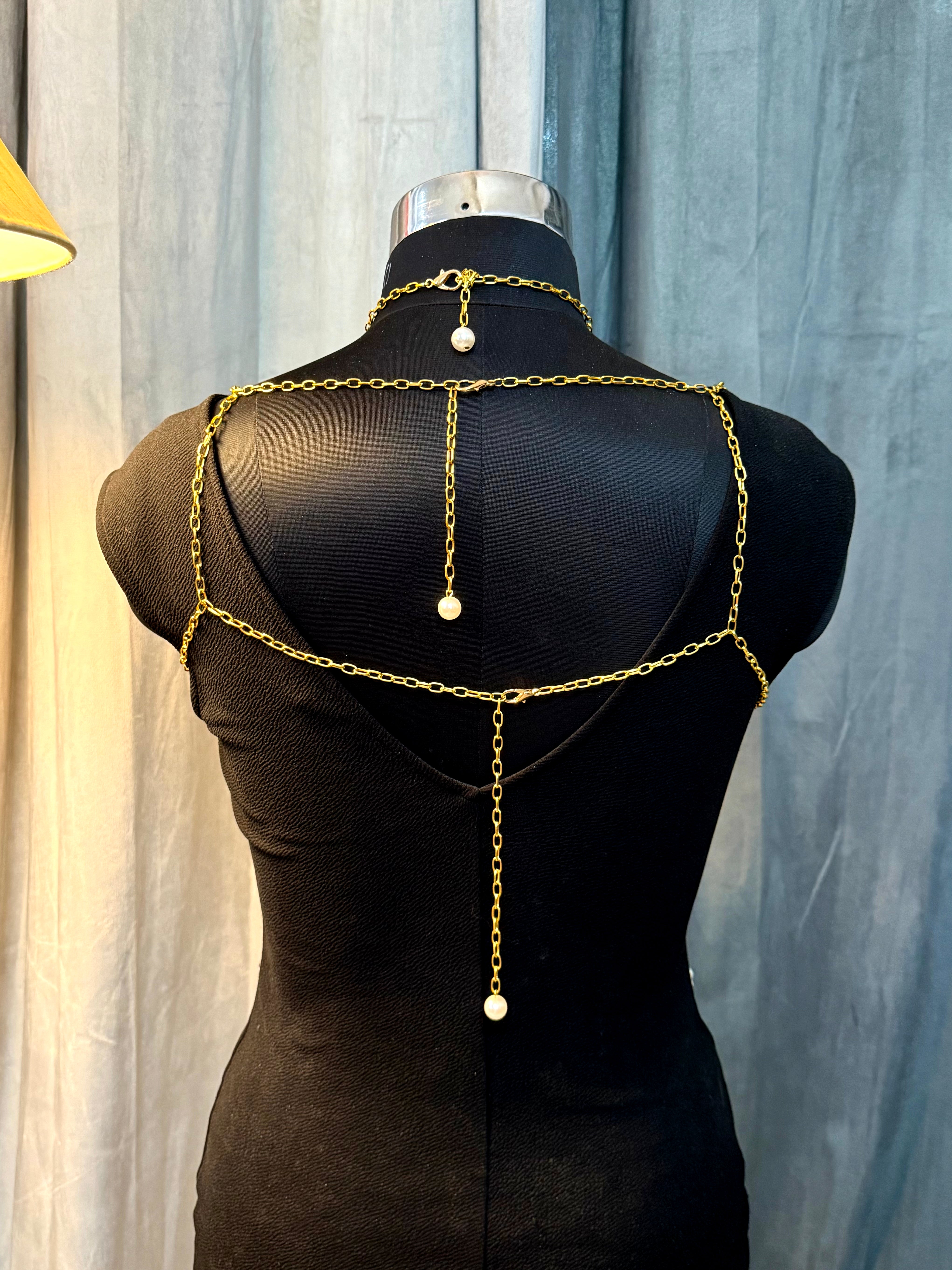 Statement pearl body top with layered drape design