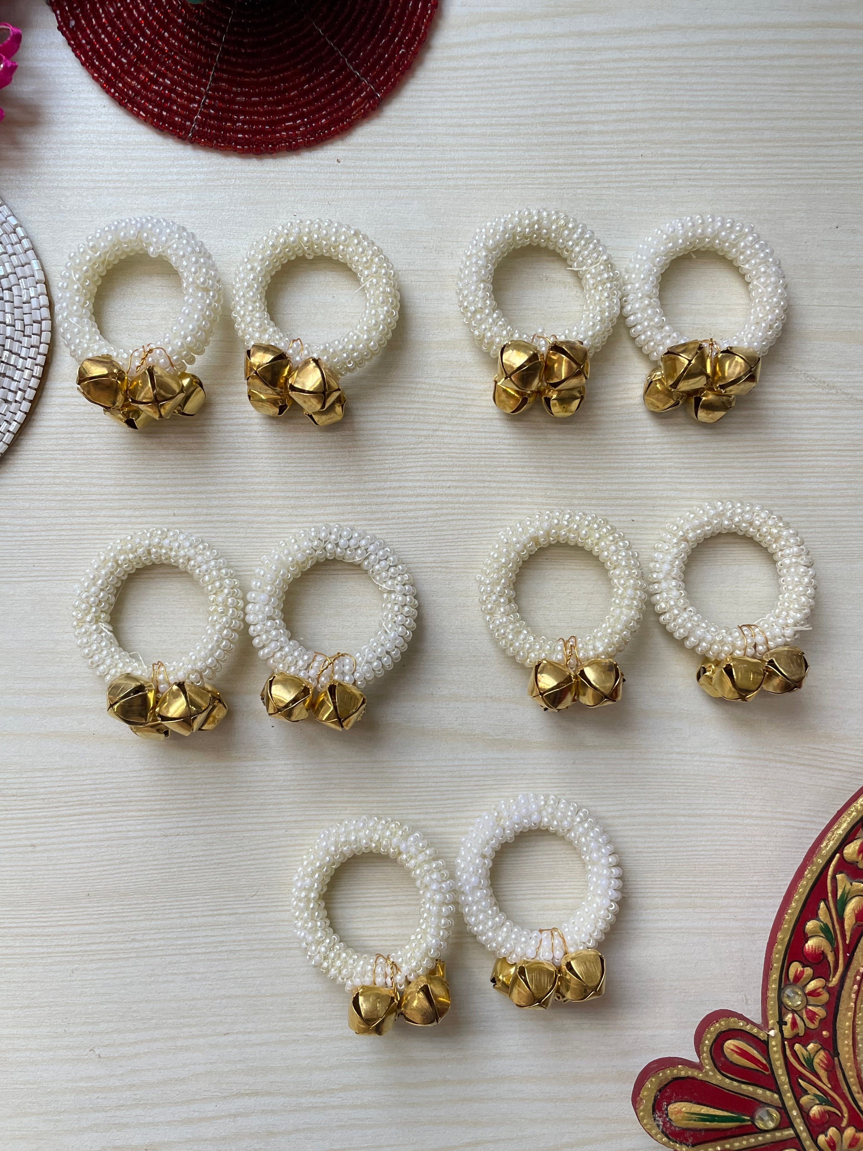 Introducing the Pearl Ghunghroo Aarti Ring Pair, the perfect addition to your pooja routine. These rings feature traditional ghungroos, adding a musical element to your aarti ceremony. Size - 2cm diameter. It has a Loose fitting to fit every member of the family and for the ghunghroos to sound well.
