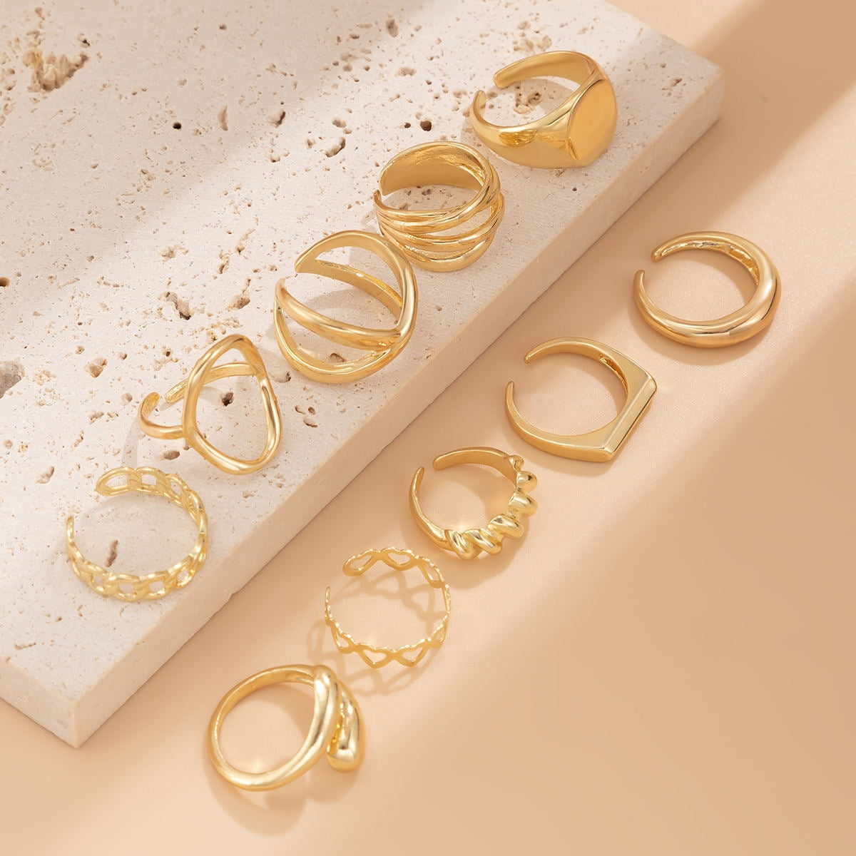 Enhance your style with our Fashion Forward Rings Stack. This set of 10 rings adds a touch of elegance and sophistication to any outfit. Made with precision and attention to detail, each ring is sure to make a statement. Elevate your fashion game with our Fashion Forward Rings Stack.