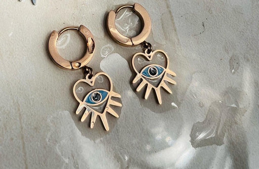 Edgy Evil Eye Huggies - Rose GoldFor the first time, we have a whole new evil eye collection of earrings that are perfect to wear on daily basis. These are Stainless Steel, Anti Tarnish, Waterproof and Hypoallergenic. Wear them as you like, they’ll be your best friend no matter where...
