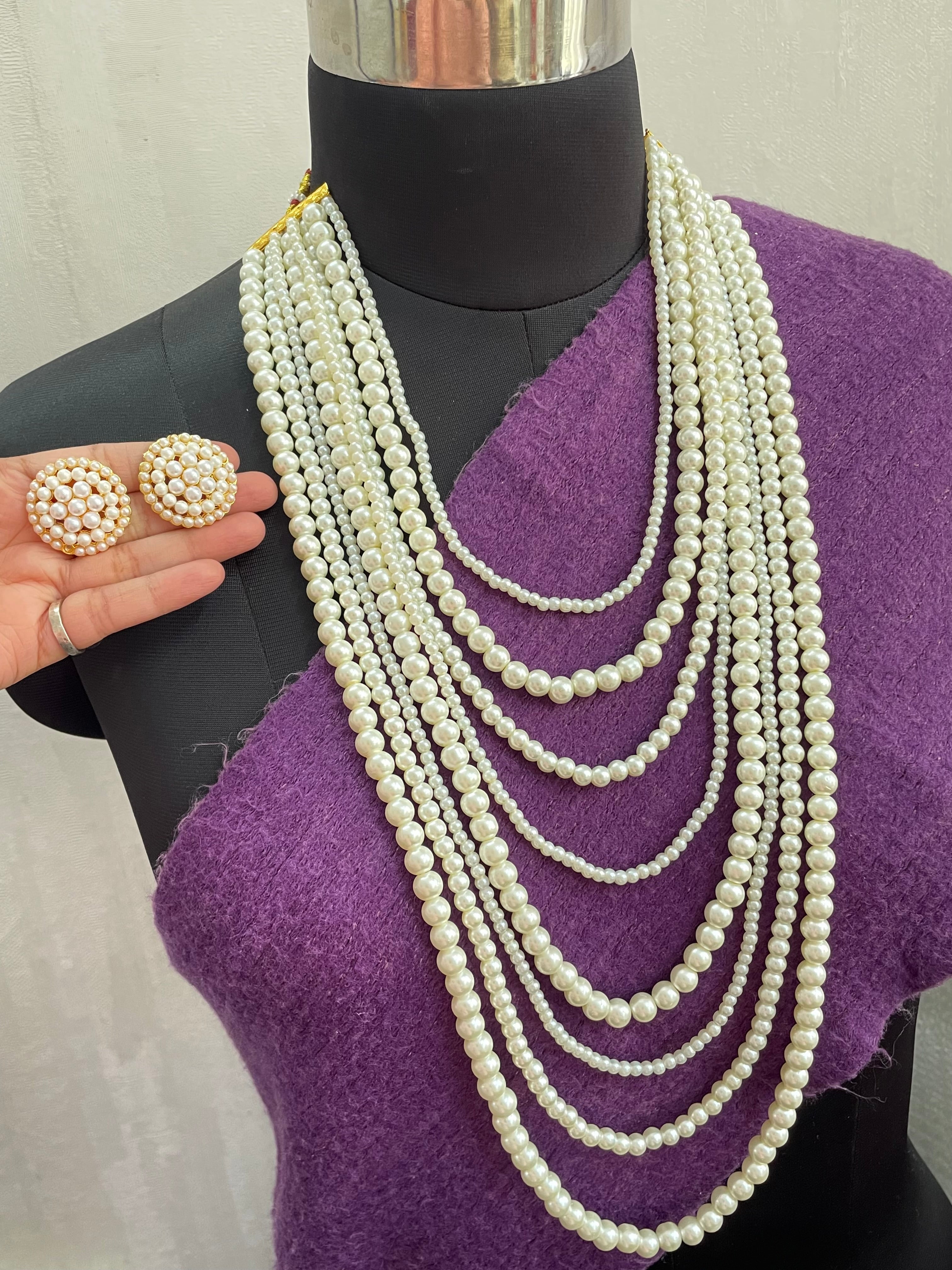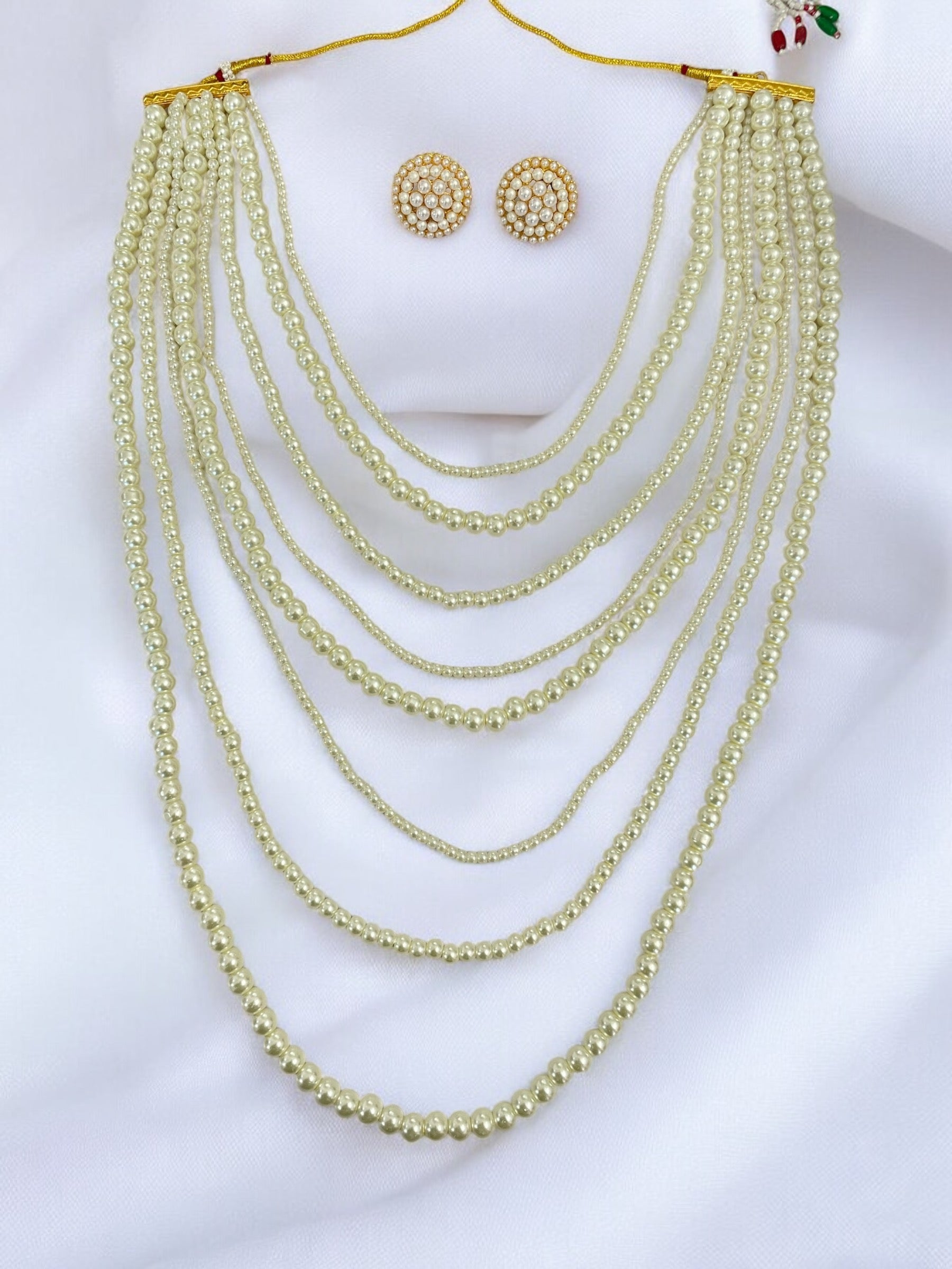 Elevate your look with our Ambika Layered Pearl Necklace Set. With a unique and stylish design, this necklace set exudes royal vibes, perfect for all your festive and occasion wear needs. Get ready to make a statement and stand out with this one-of-a-kind piece.