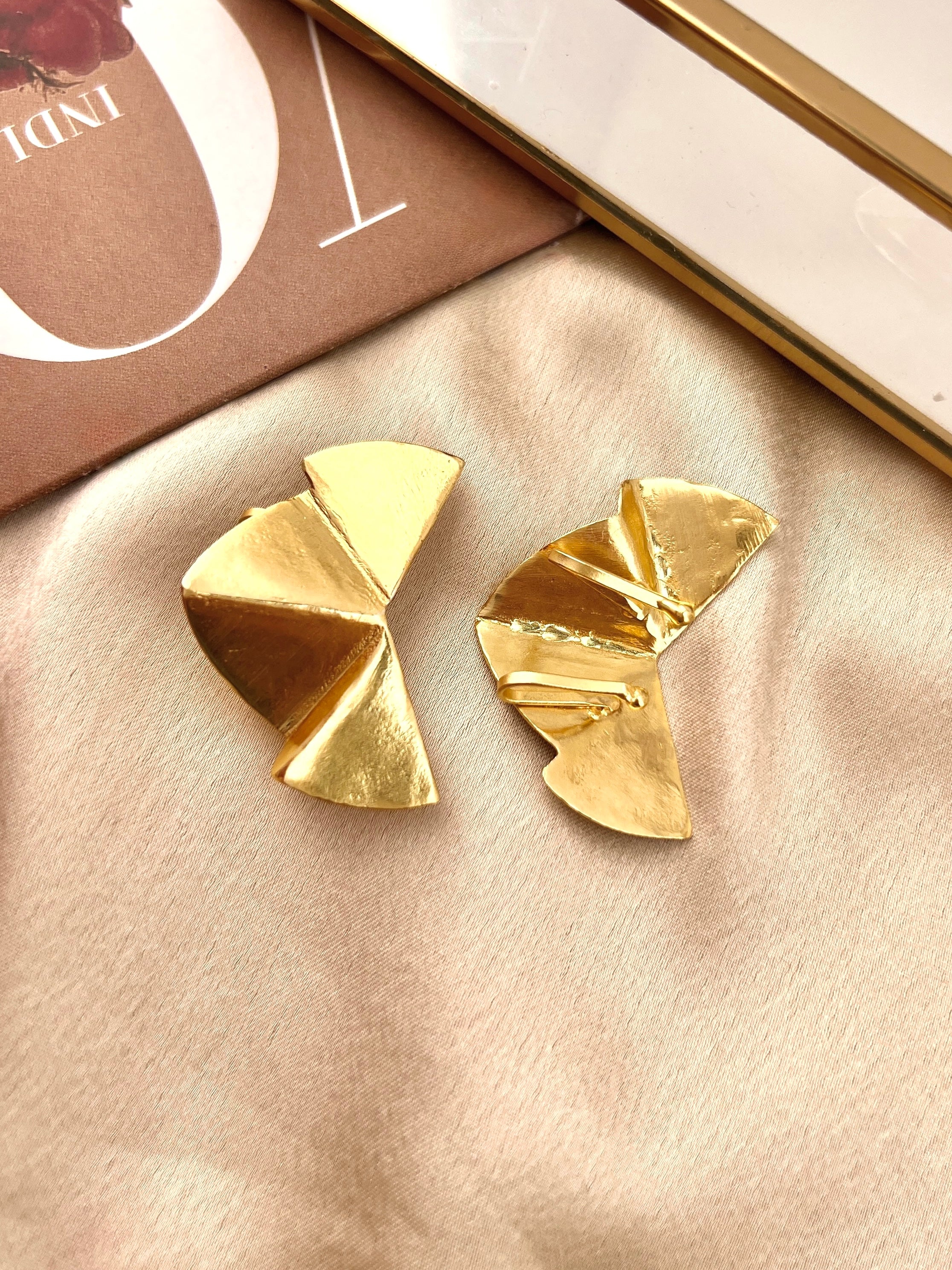 The Armour Fold Earcuff is a bold statement piece inspired by armour folds and geometric art. With its unique fan-like folded design in a shiny gold finish, this earcuff is perfect for adding an edgy, modern twist to your look. Lightweight yet striking, it makes you stand out effortlessly.