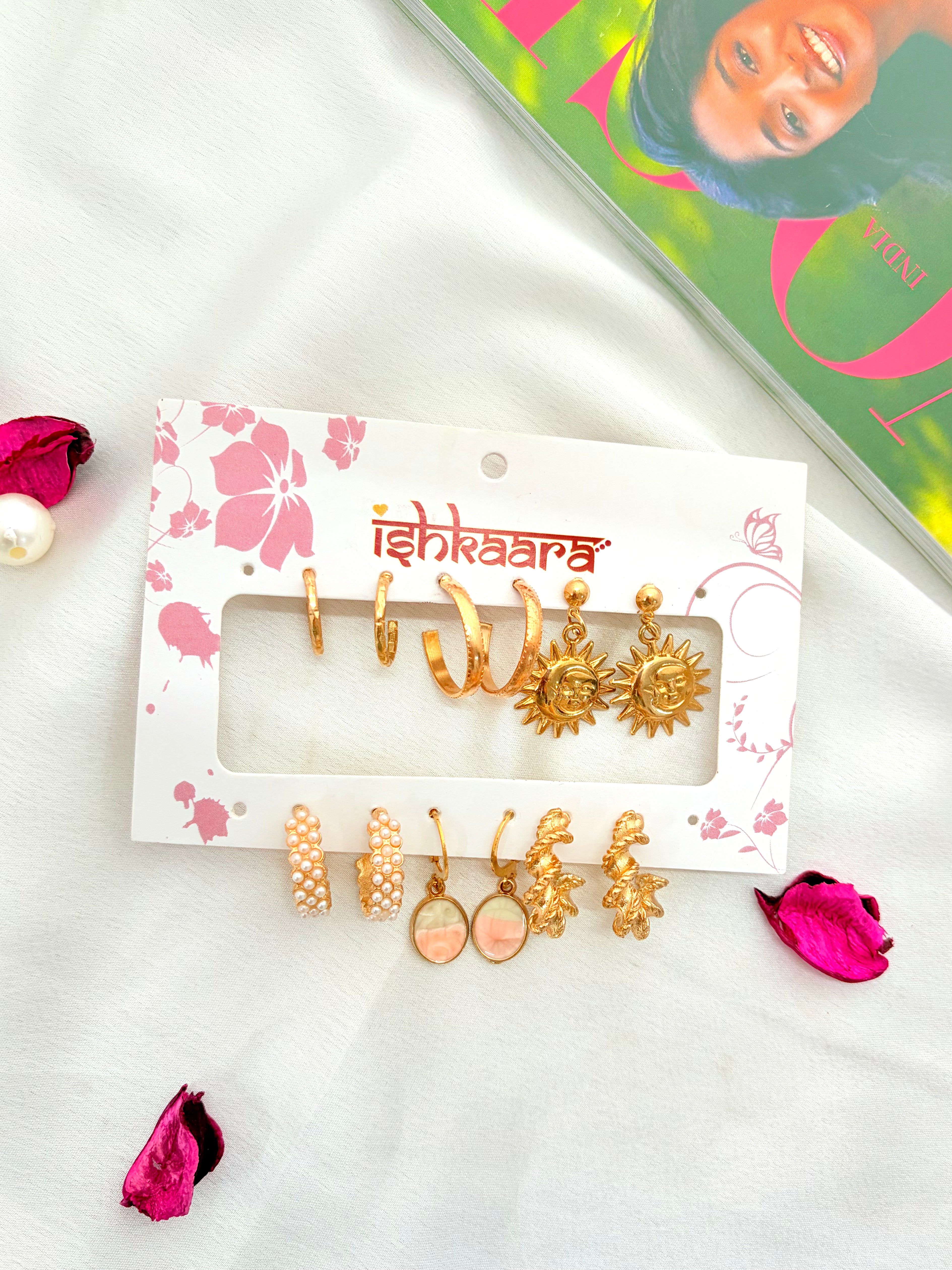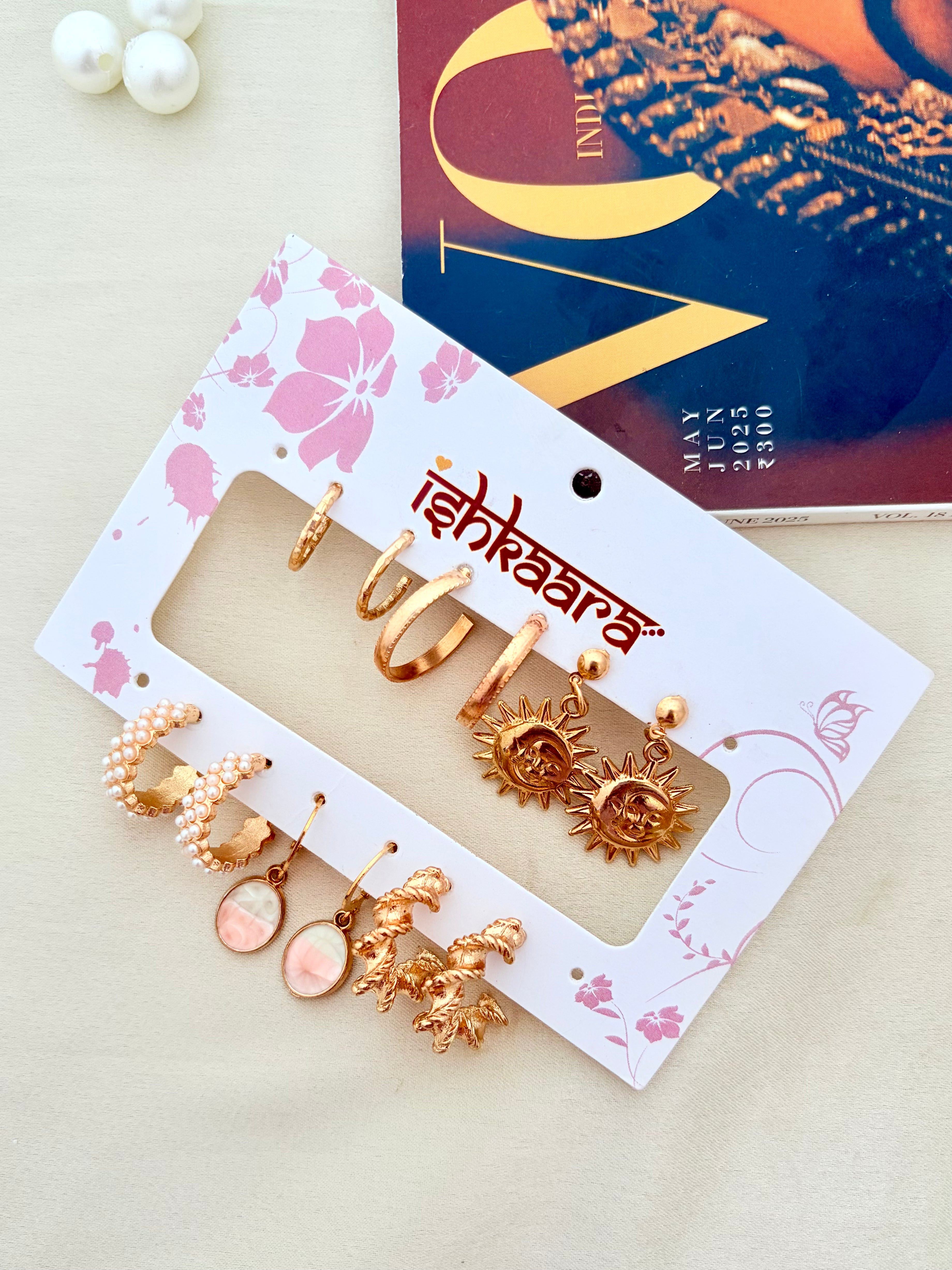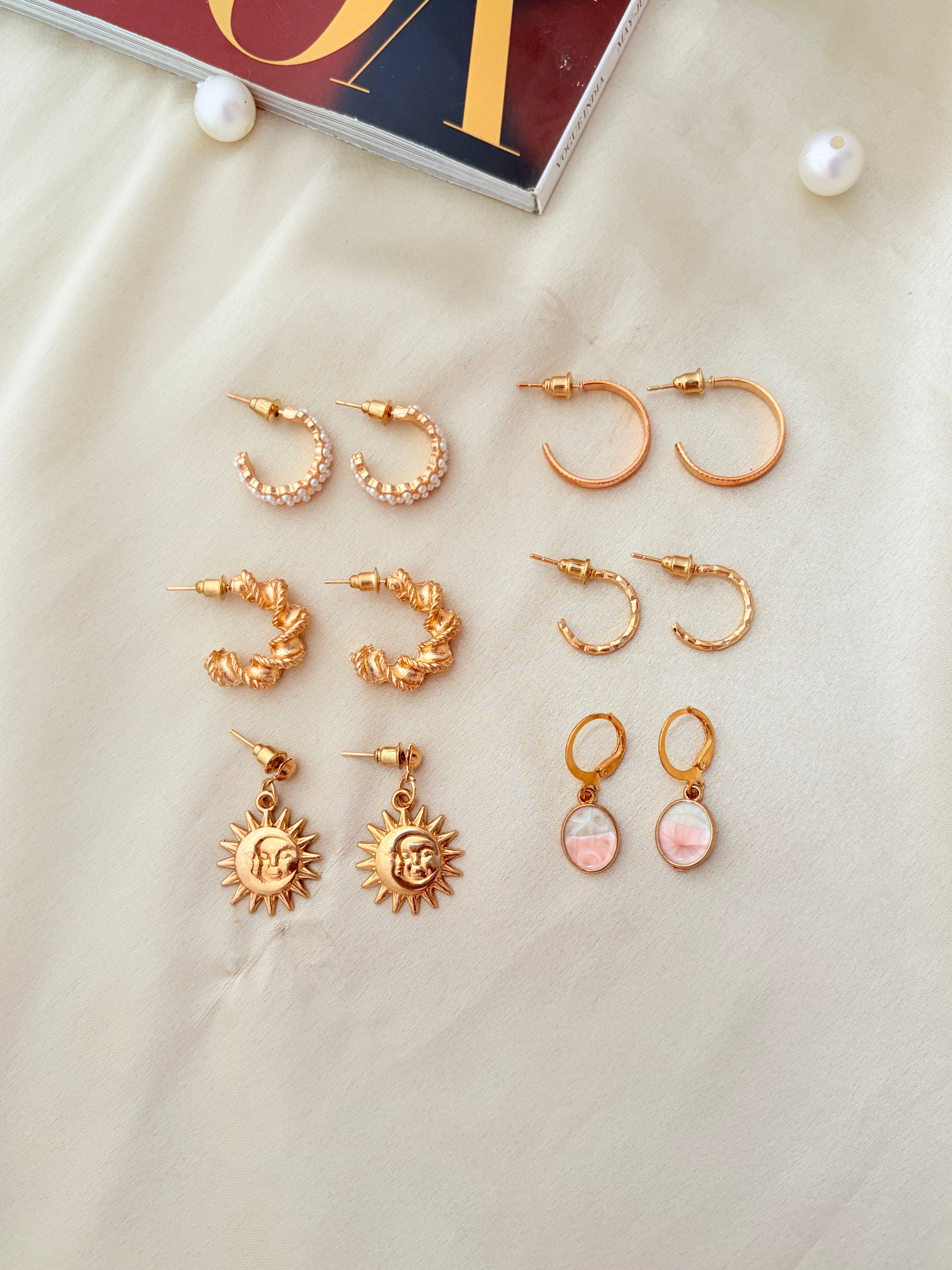 Style Tips: Pair the sun earrings with ethnic wear for a bold festive look, or the classic gold hoops for casual chic outfits. The pearl and shell-inspired designs work perfectly with soft pastel dresses or summer fits.