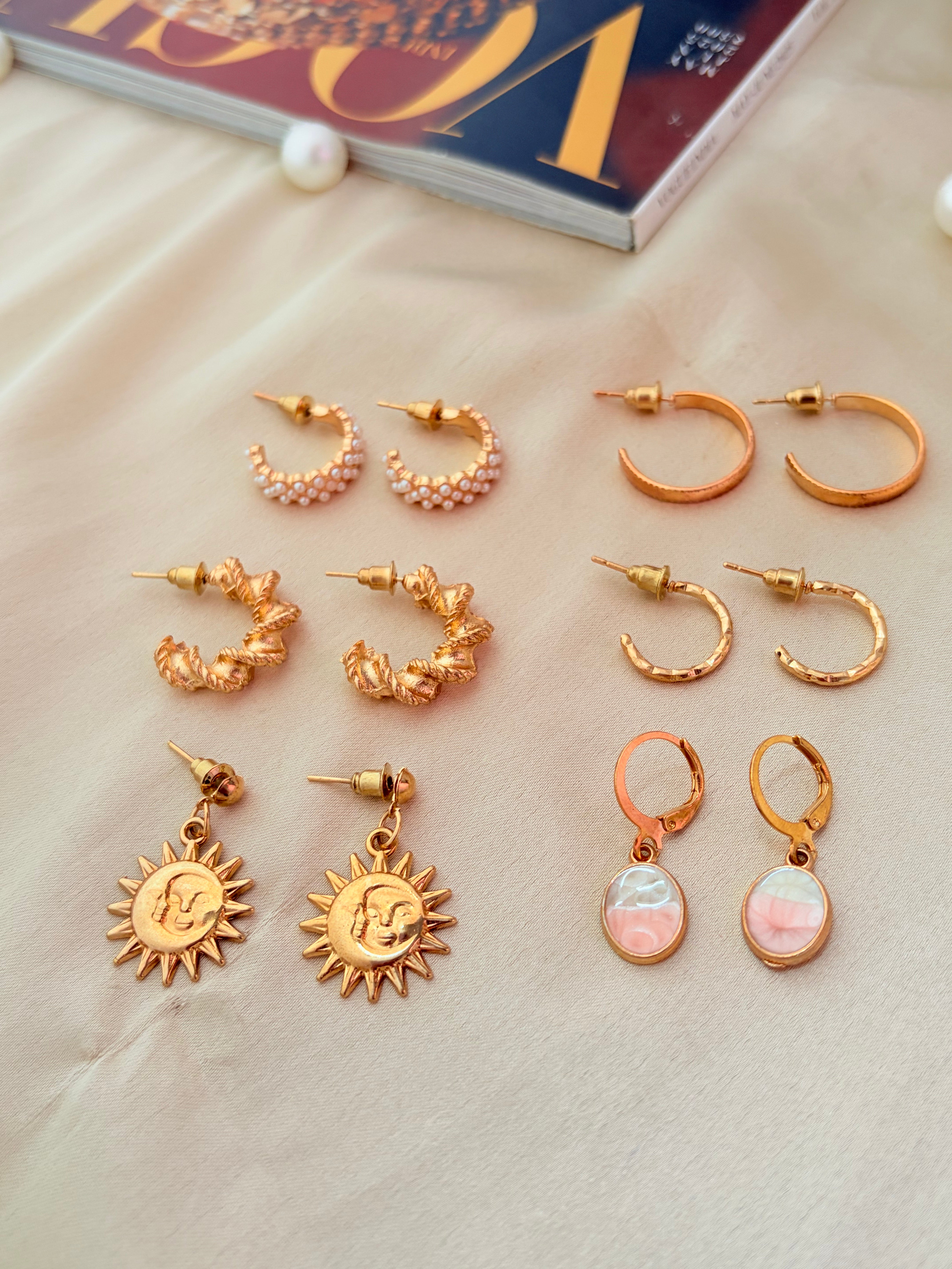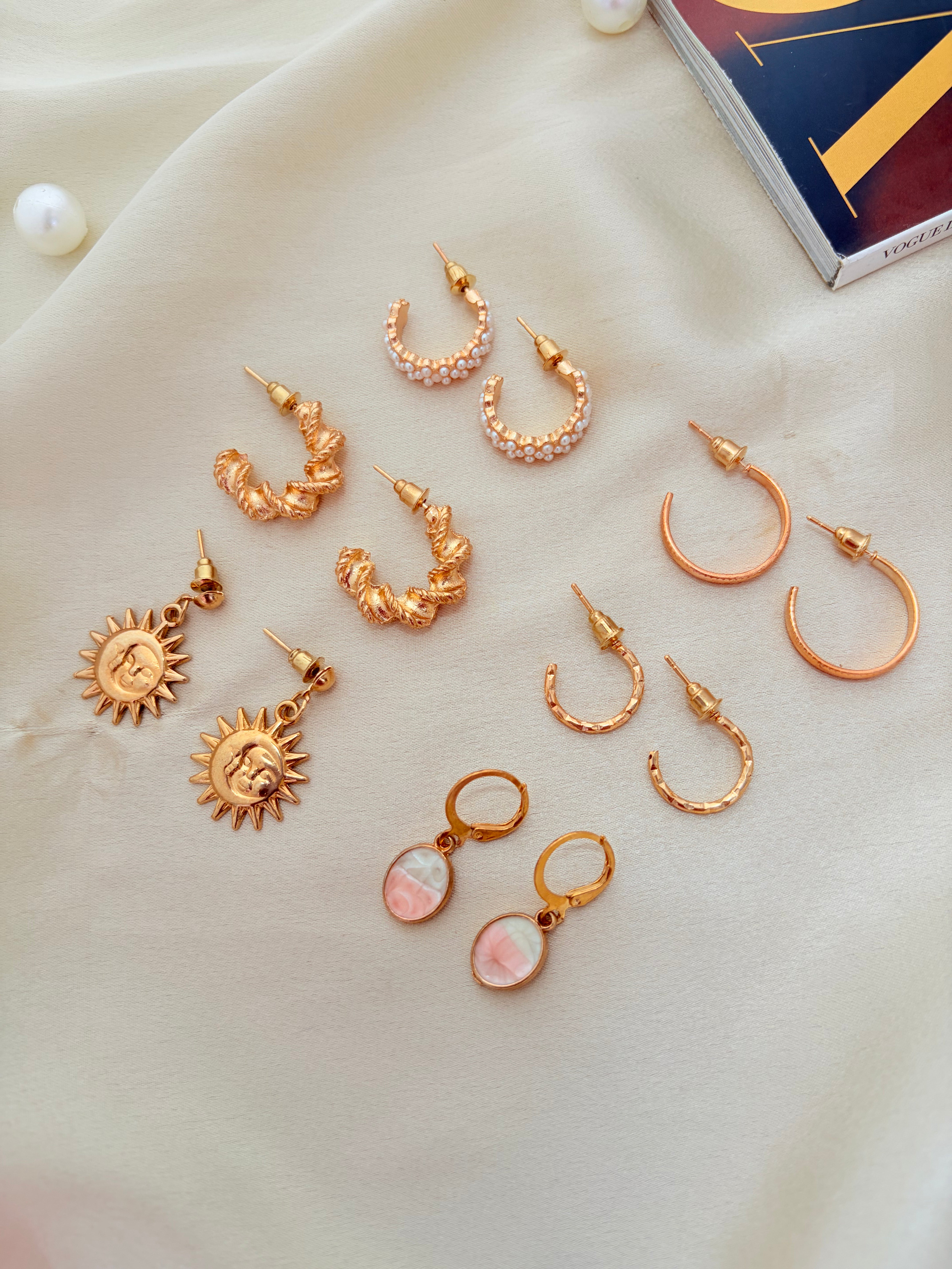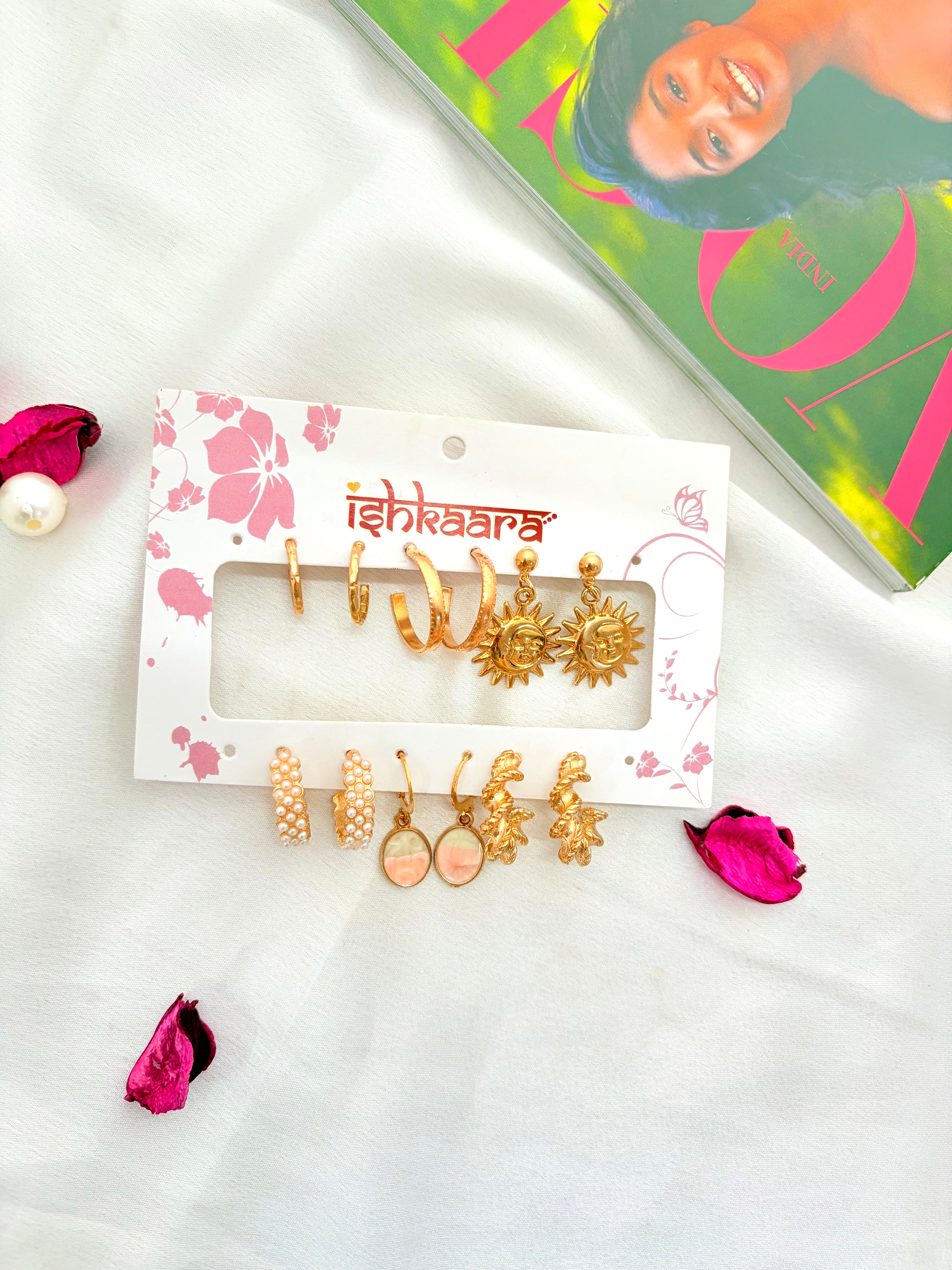 Style Tips: Pair the sun earrings with ethnic wear for a bold festive look, or the classic gold hoops for casual chic outfits. The pearl and shell-inspired designs work perfectly with soft pastel dresses or summer fits.