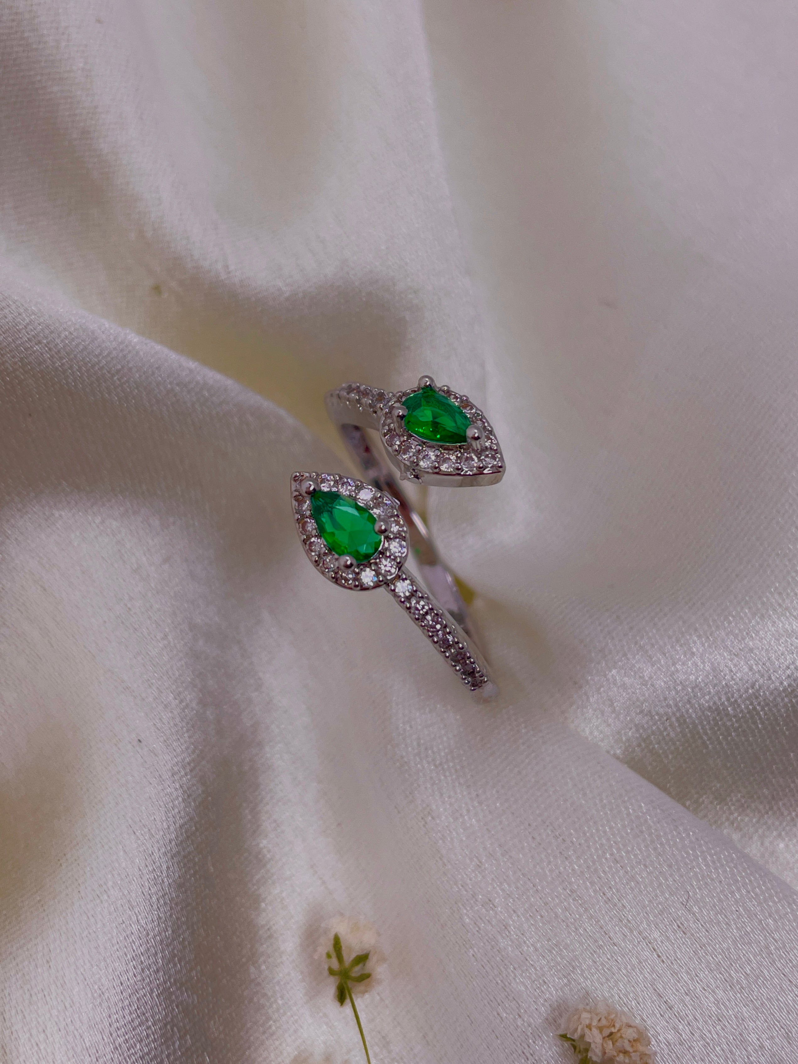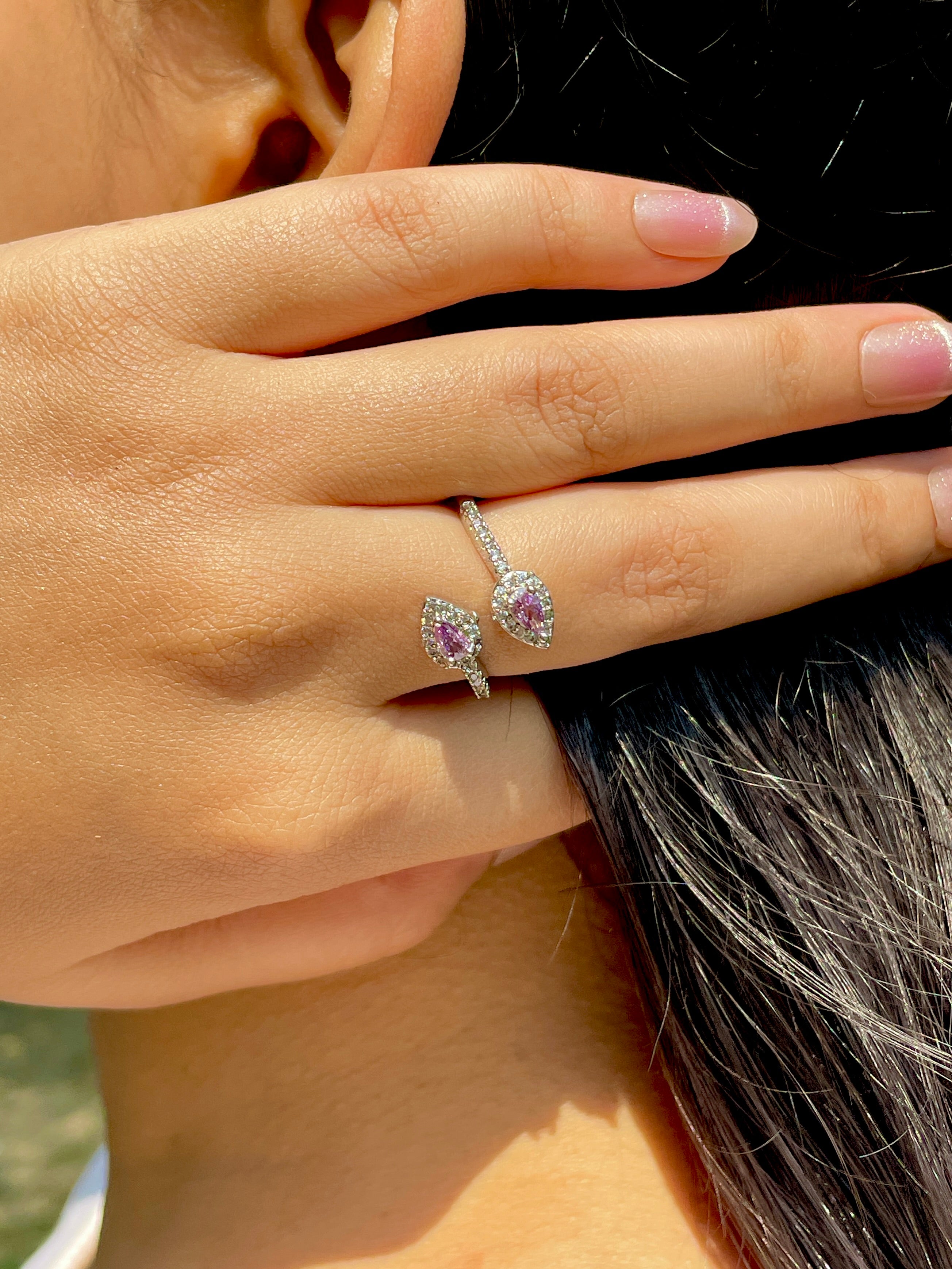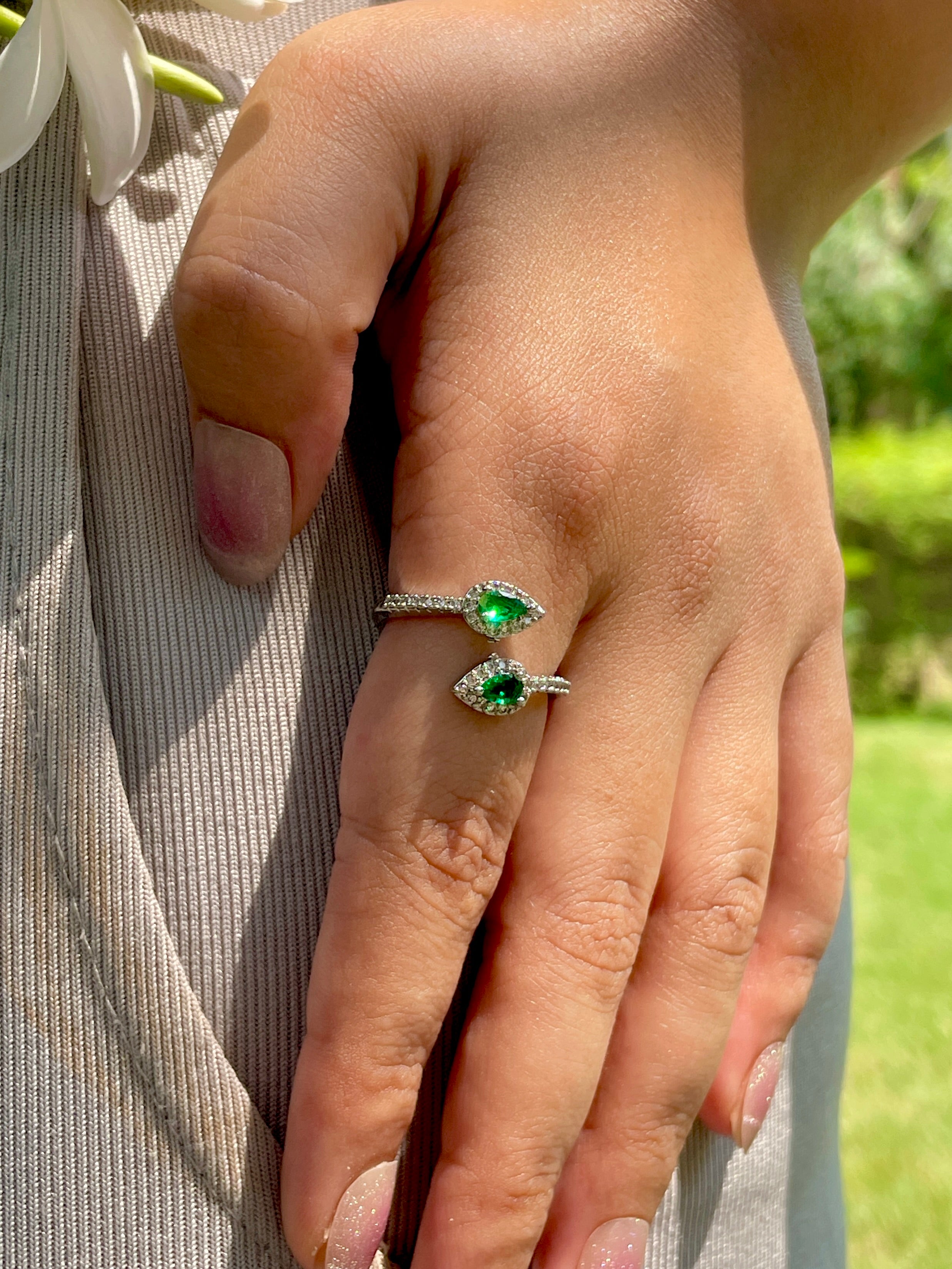 A glam essential that shines from every angle. Unique twin sparkle design that wraps your finger with elegance. A stylish open ring with twin teardrop stones and CZ detailing.