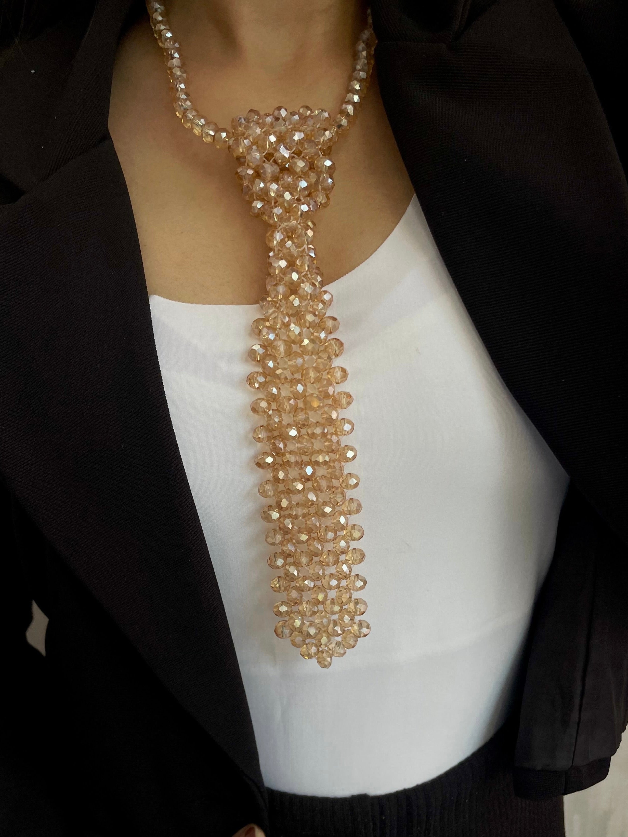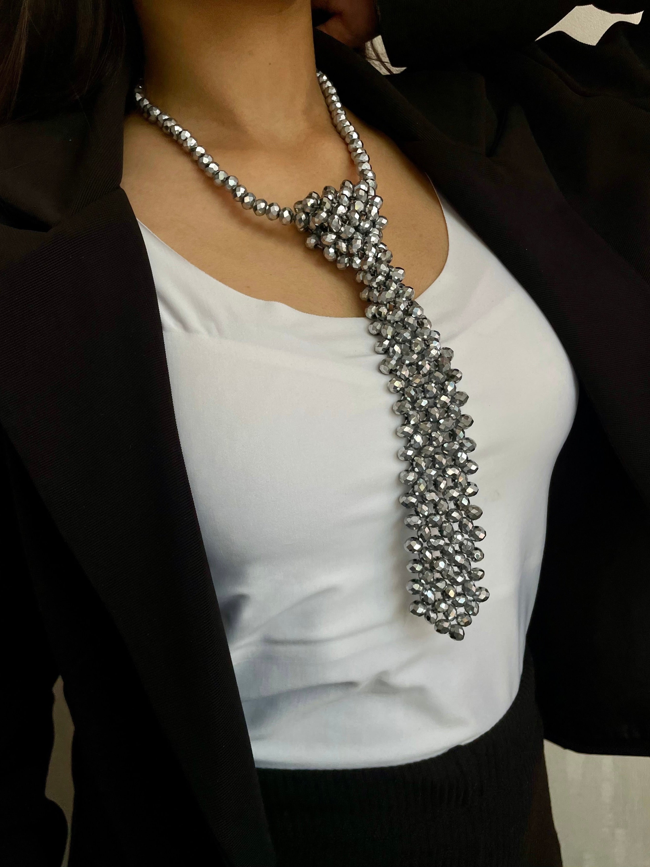 यह बेडाज़ल्ड बो टाई नेकलेस किसी भी पोशाक में अनोखा, दबंग वाइब्स लाता है। अपने क्लासी और स्टाइलिश डिज़ाइन के साथ, यह निश्चित रूप से एक स्टेटमेंट बनाएगा। इस मज़ेदार एक्सेसरी के साथ अपना चंचल पक्ष दिखाएँ। सिर्फ़ गाँठ न बाँधें, बल्कि उसे चमकाएँ!