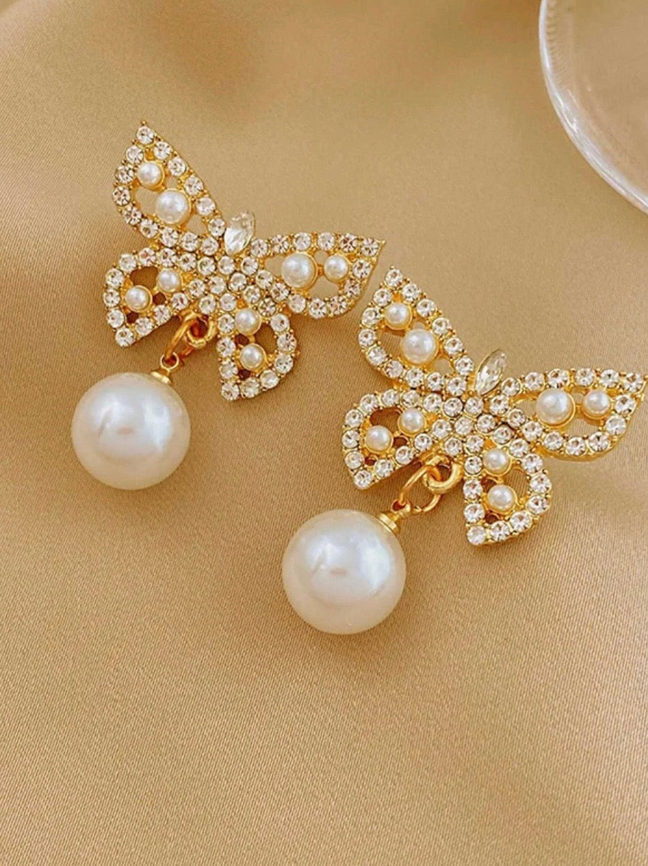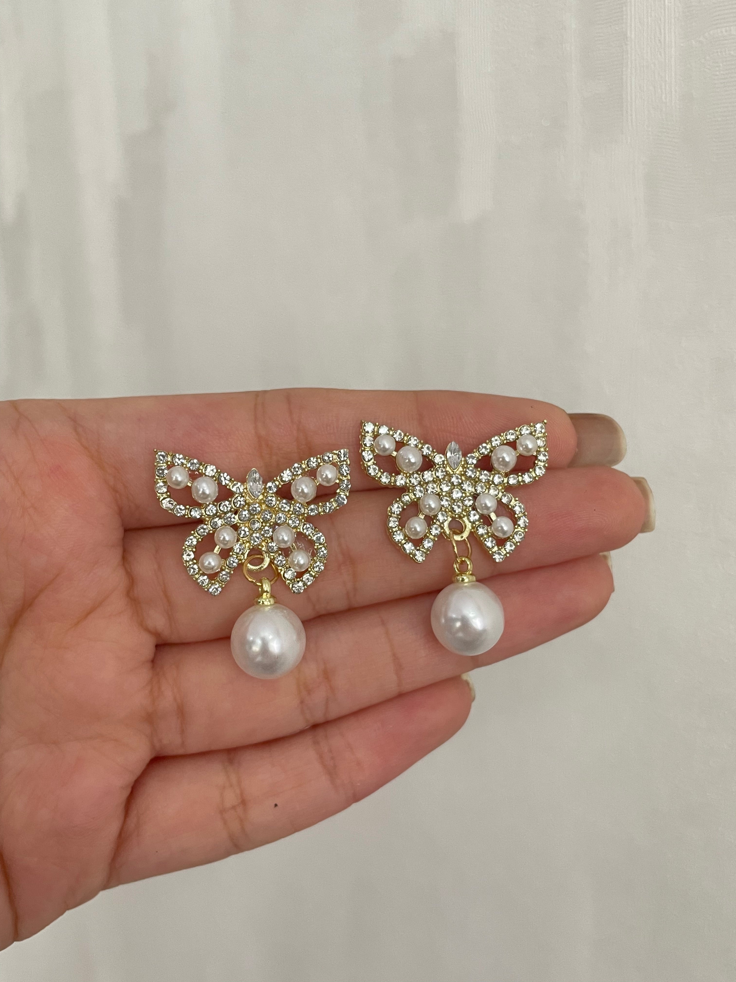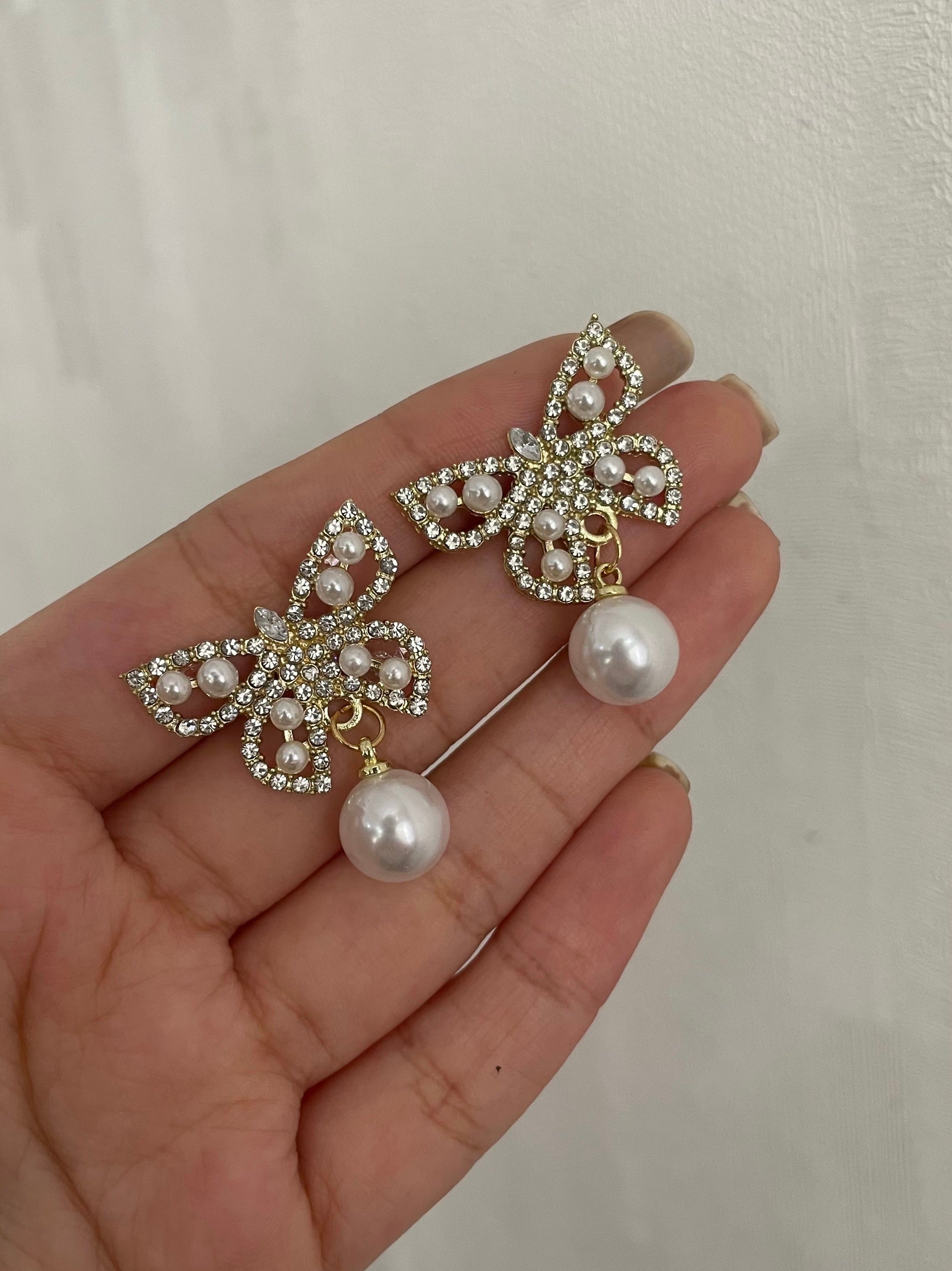 इन आकर्षक बटरफ्लाई पर्ल इयररिंग्स के साथ OOTD स्टेटमेंट बनाएं। मज़ेदार और स्टाइलिश, ये इयररिंग्स आपको भीड़ से अलग खड़ा करेंगी और आपको तारीफ़ों की झड़ी लगा देंगी!