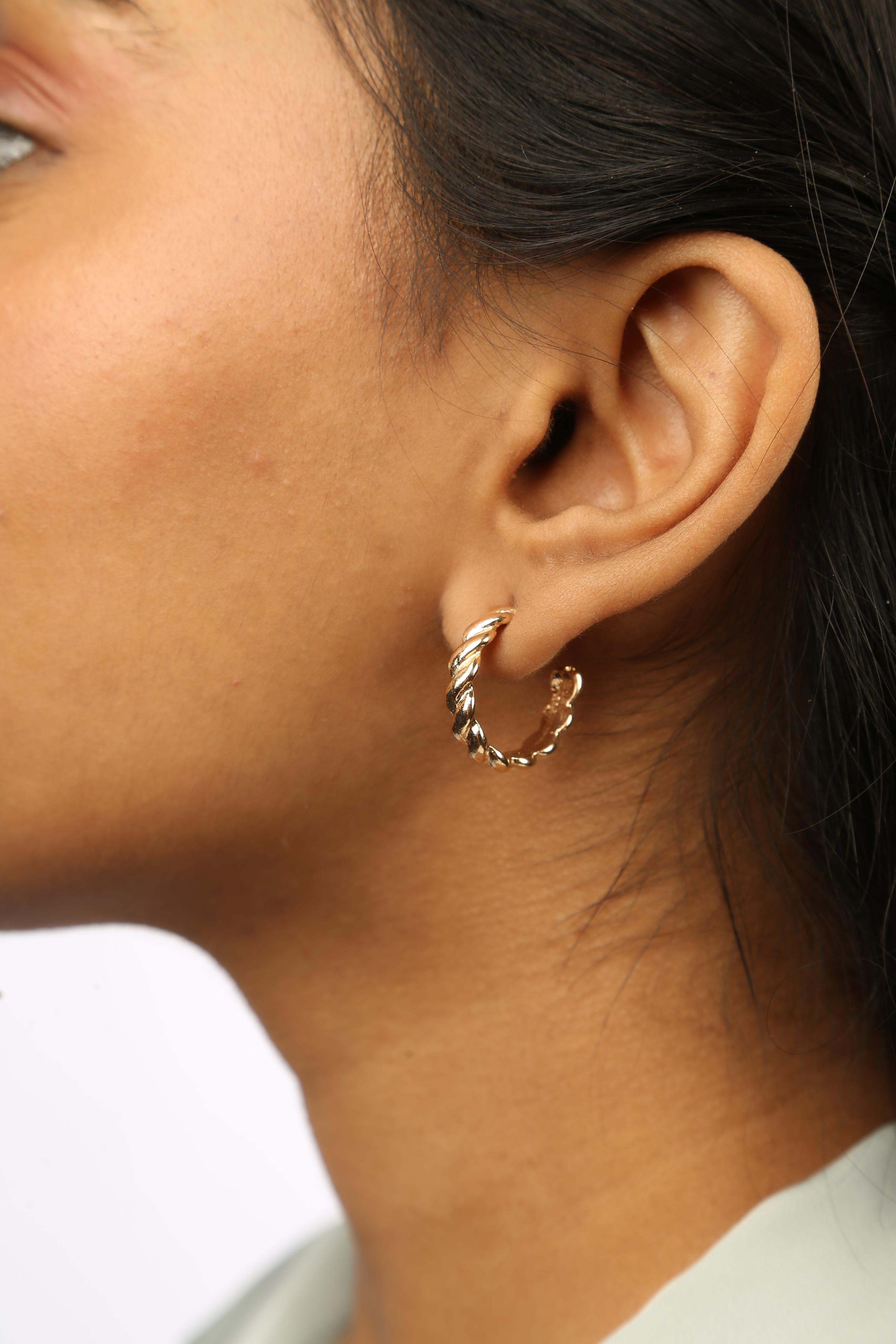 इन क्लासिक ट्विस्ट हूप्स के साथ अपने लुक में कुछ क्लासी और अनोखापन जोड़ें। ये हूप्स पारंपरिक डिज़ाइन में एक सौंदर्यपूर्ण मोड़ प्रदान करते हैं, जो उन्हें किसी भी पोशाक के लिए एक स्टाइलिश और मज़ेदार जोड़ बनाते हैं। इन हूप्स के साथ अपने आभूषण संग्रह को अपग्रेड करें!