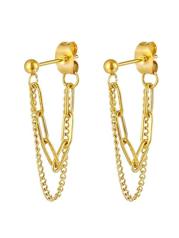 The Gold Lock Chain Earrings bring a bold yet classy vibe to your look. Designed with layered chain details and a sleek golden finish, these earrings add the perfect touch of statement glam to any outfit. Lightweight and stylish, they are perfect for both daily wear and party looks.