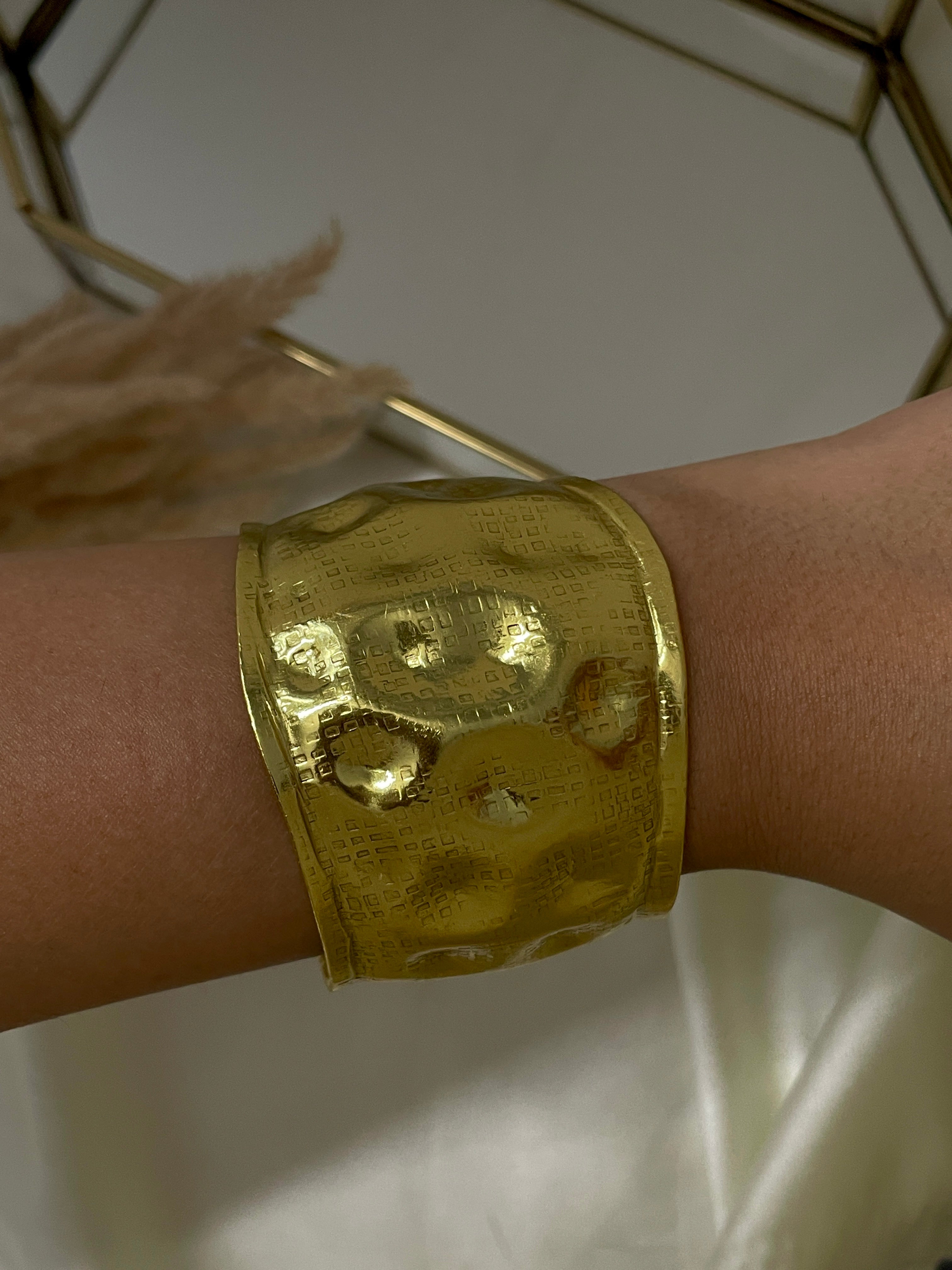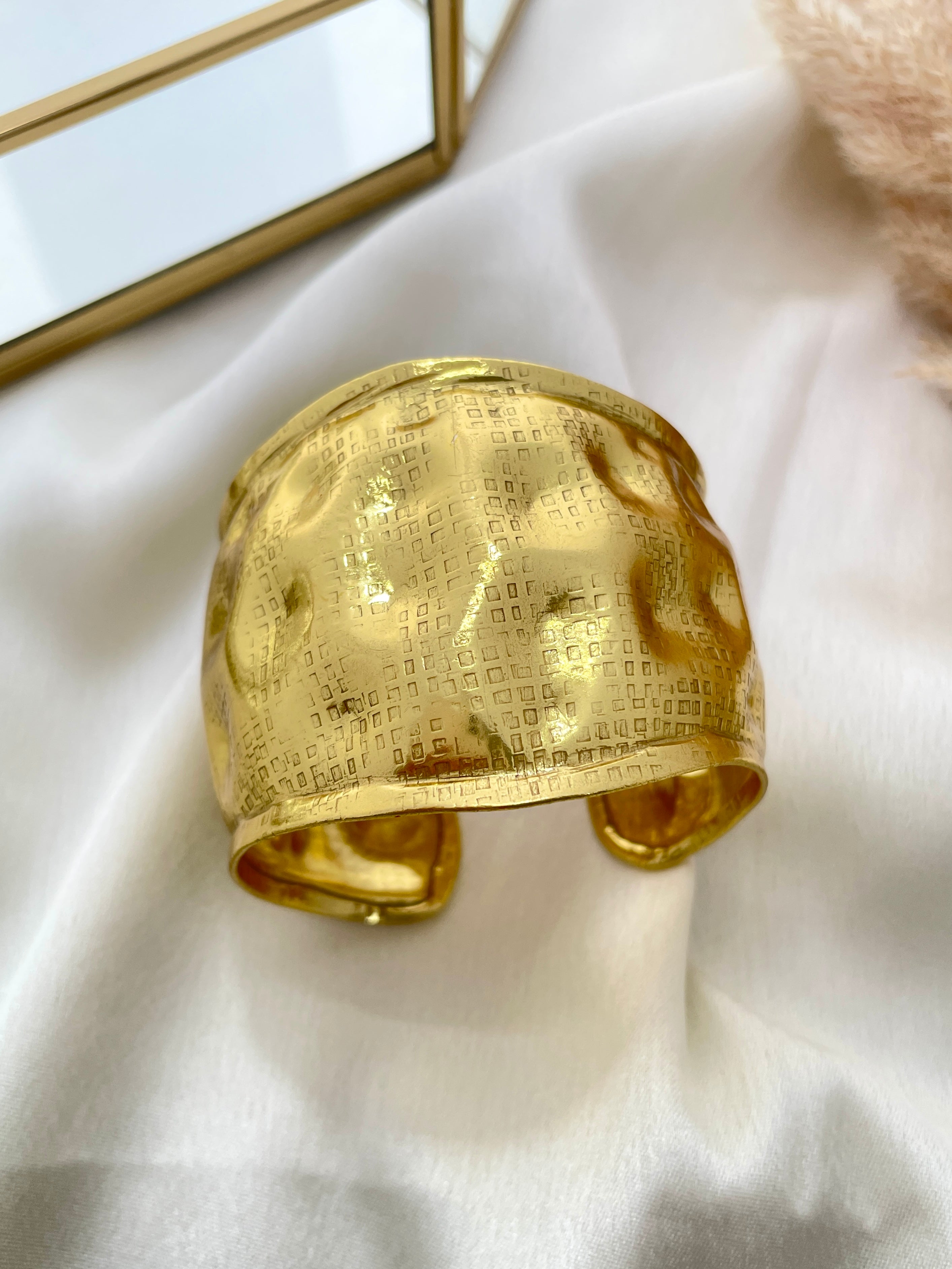 Bold. Timeless. Unapologetically you. This hammered gold cuff bracelet adds instant drama and shine to any outfit.