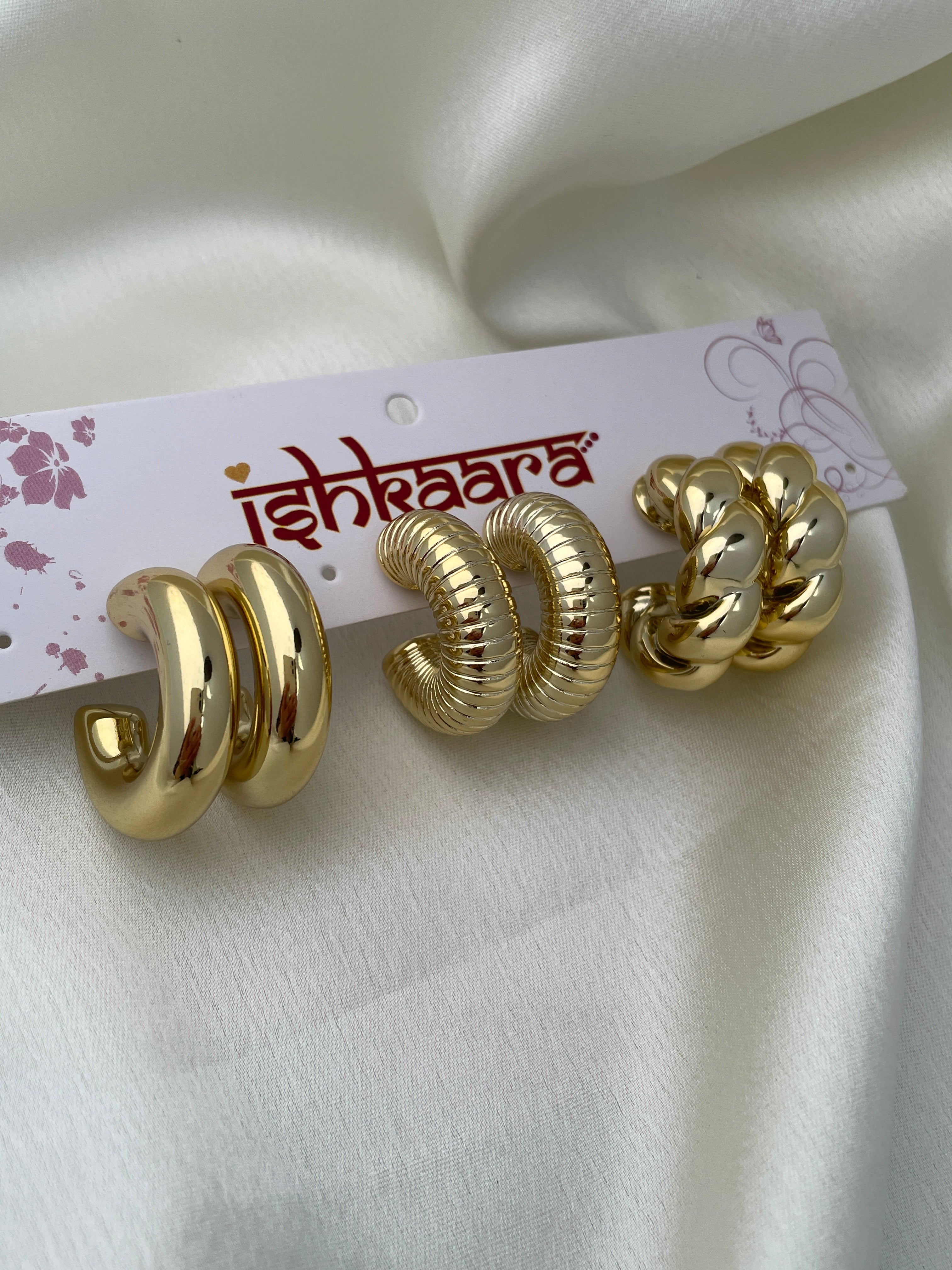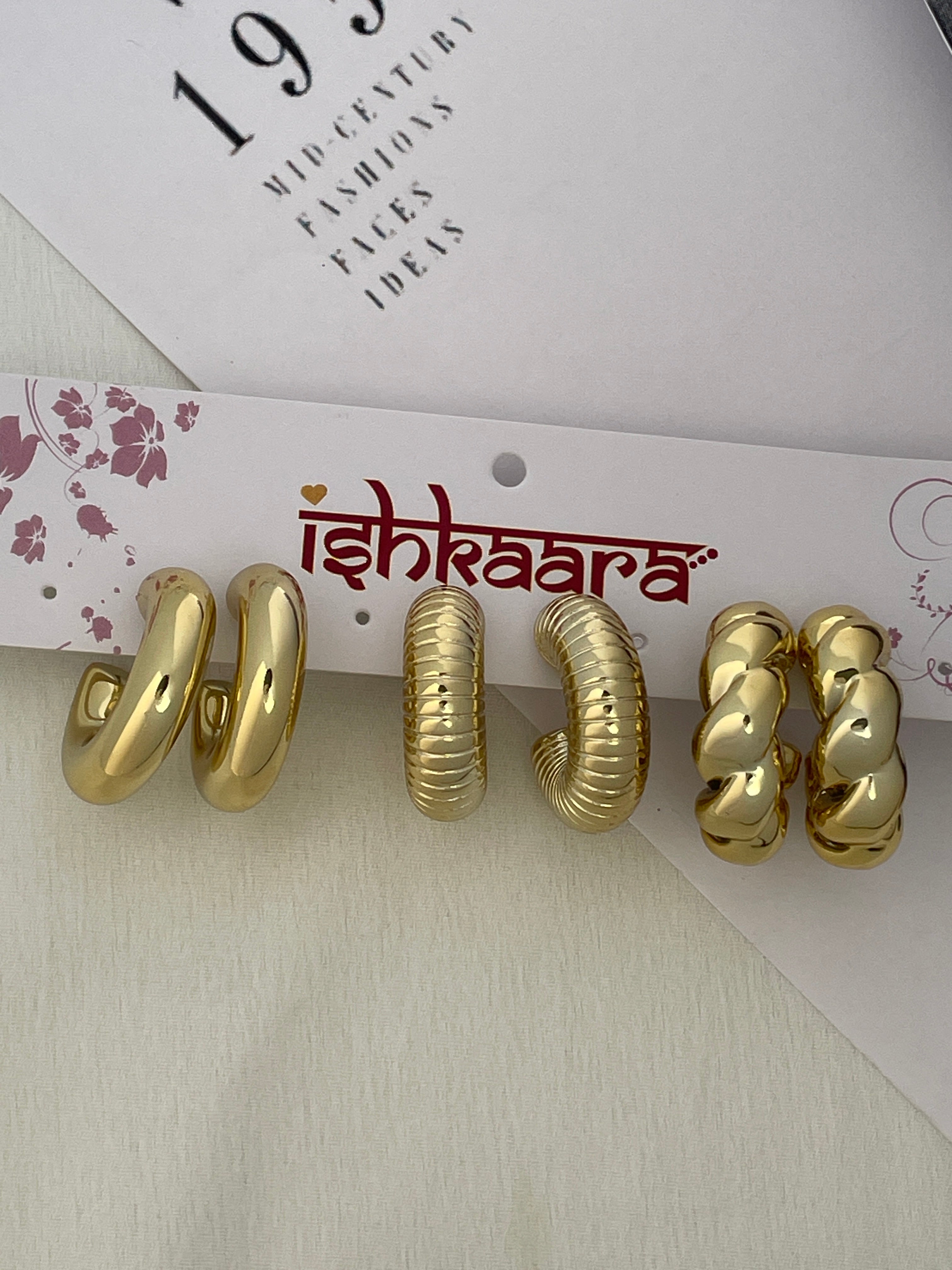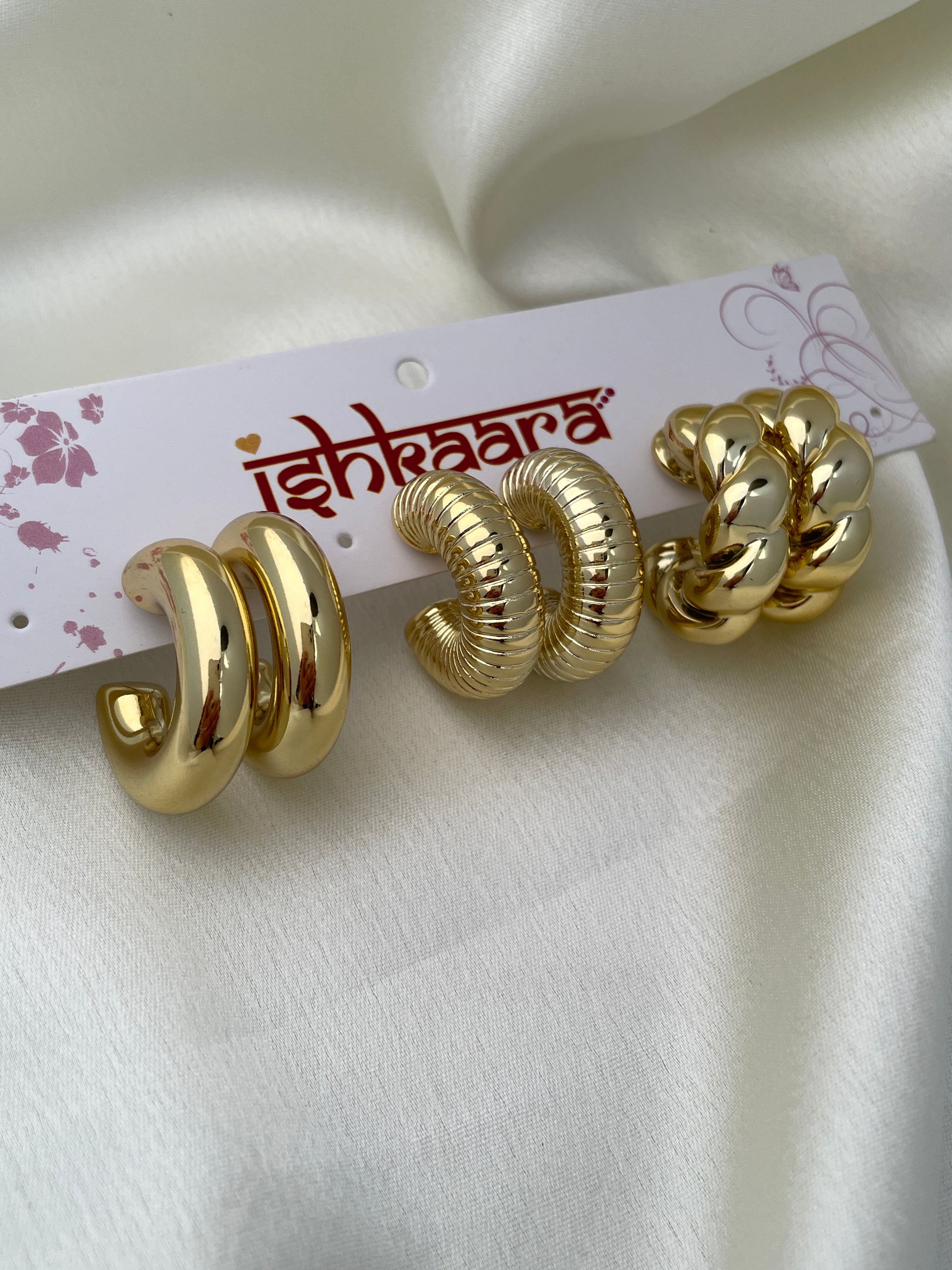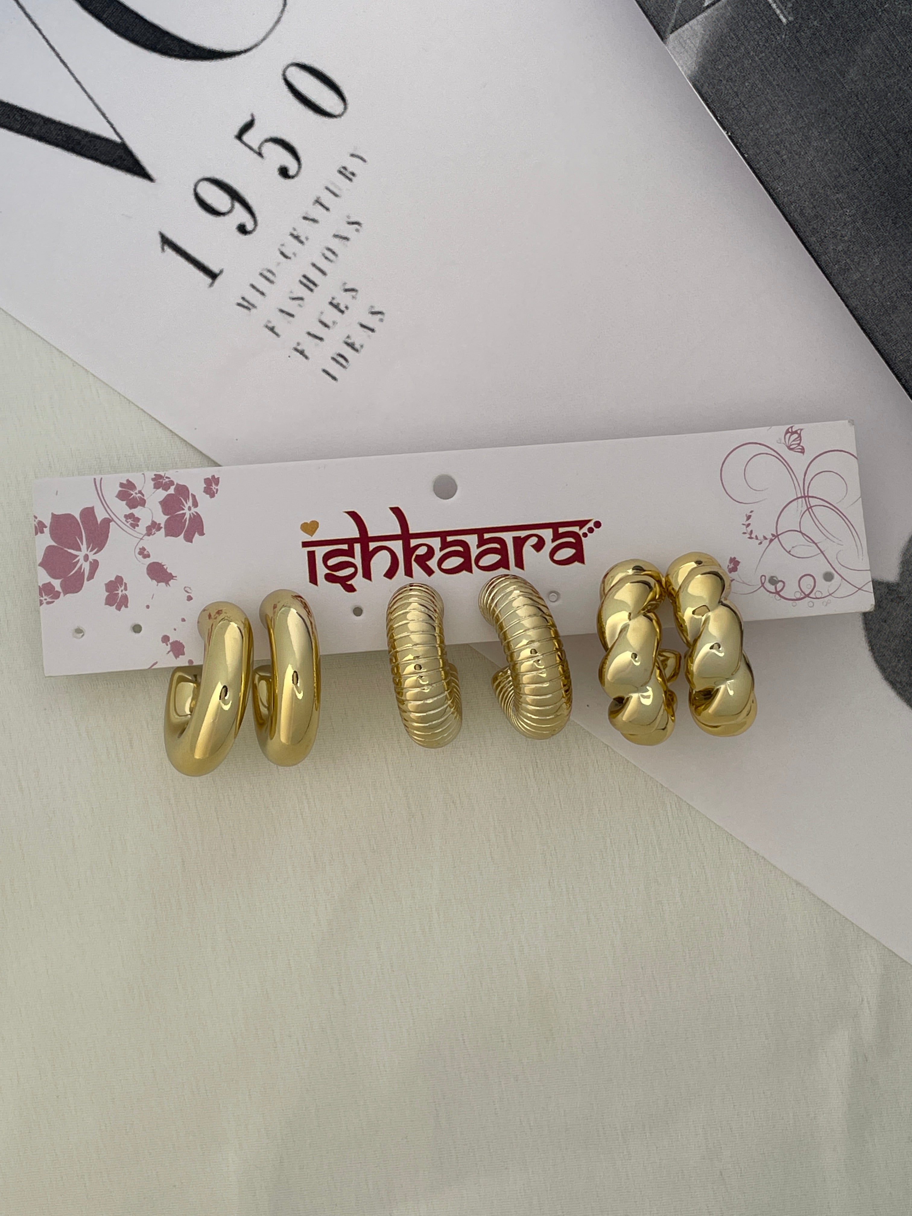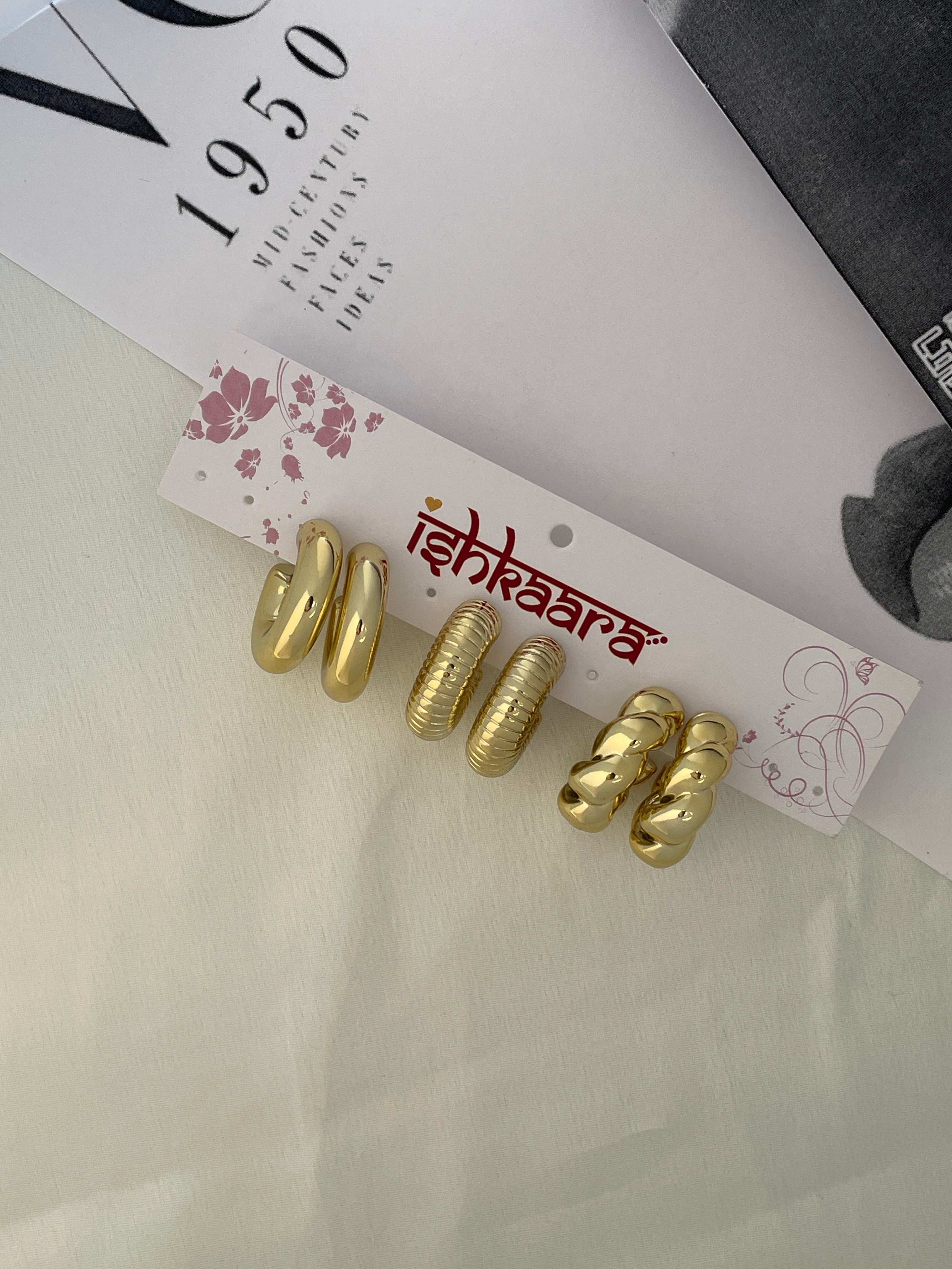 Experience effortless style with our Hoops Of Glory Combo. The unique and elegant design makes a classy statement suitable for everyday wear. Enjoy the chic and stylish look while elevating your accessory game. Add these hoops to your collection for a touch of class and sophistication.