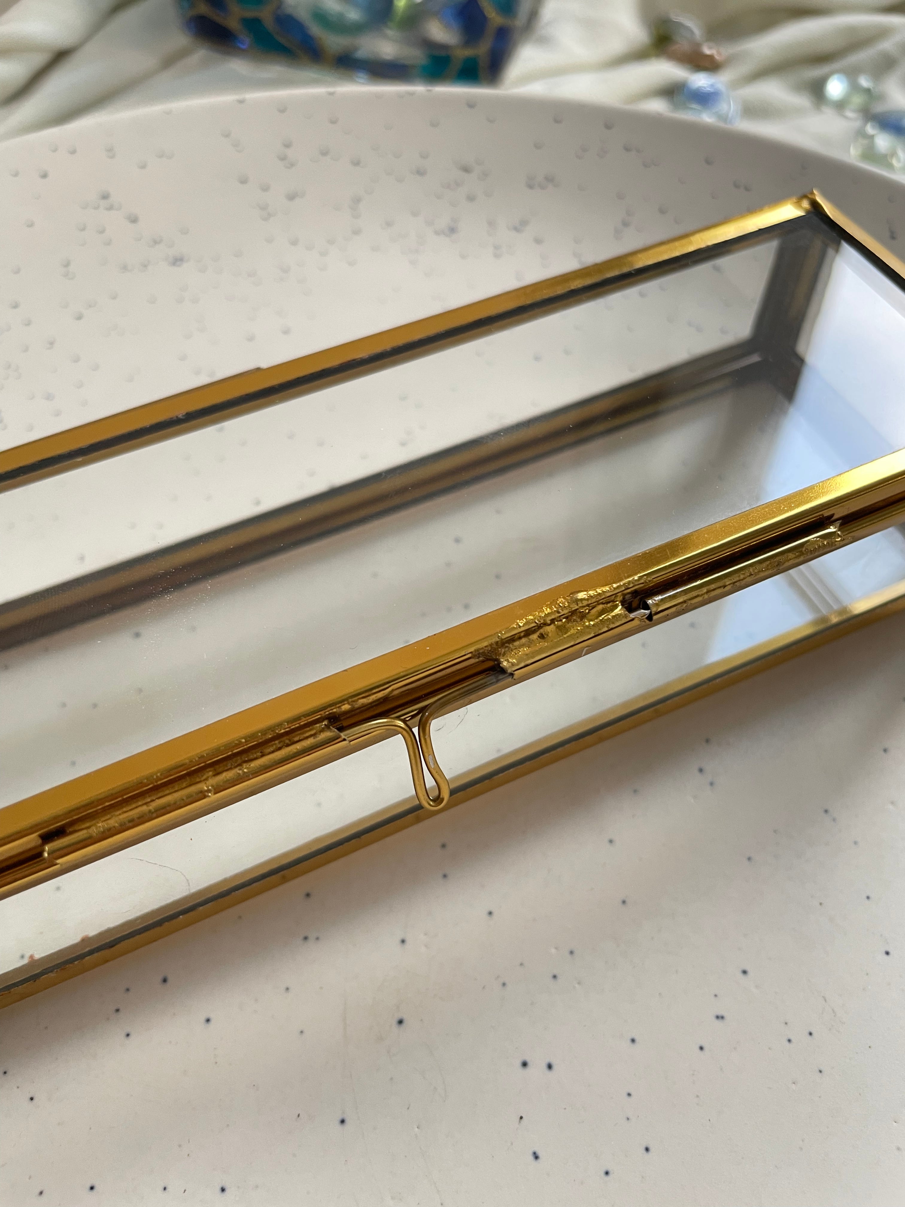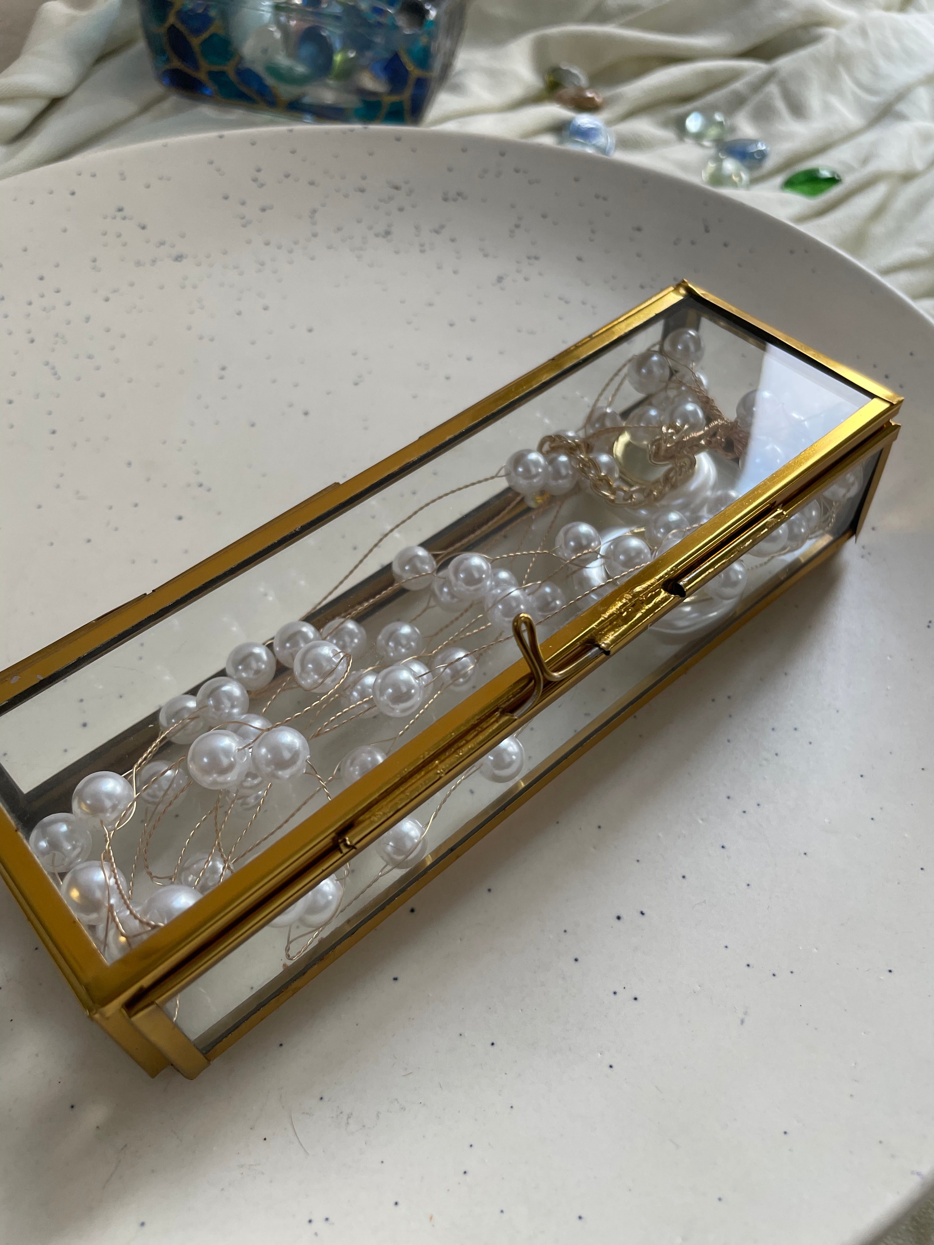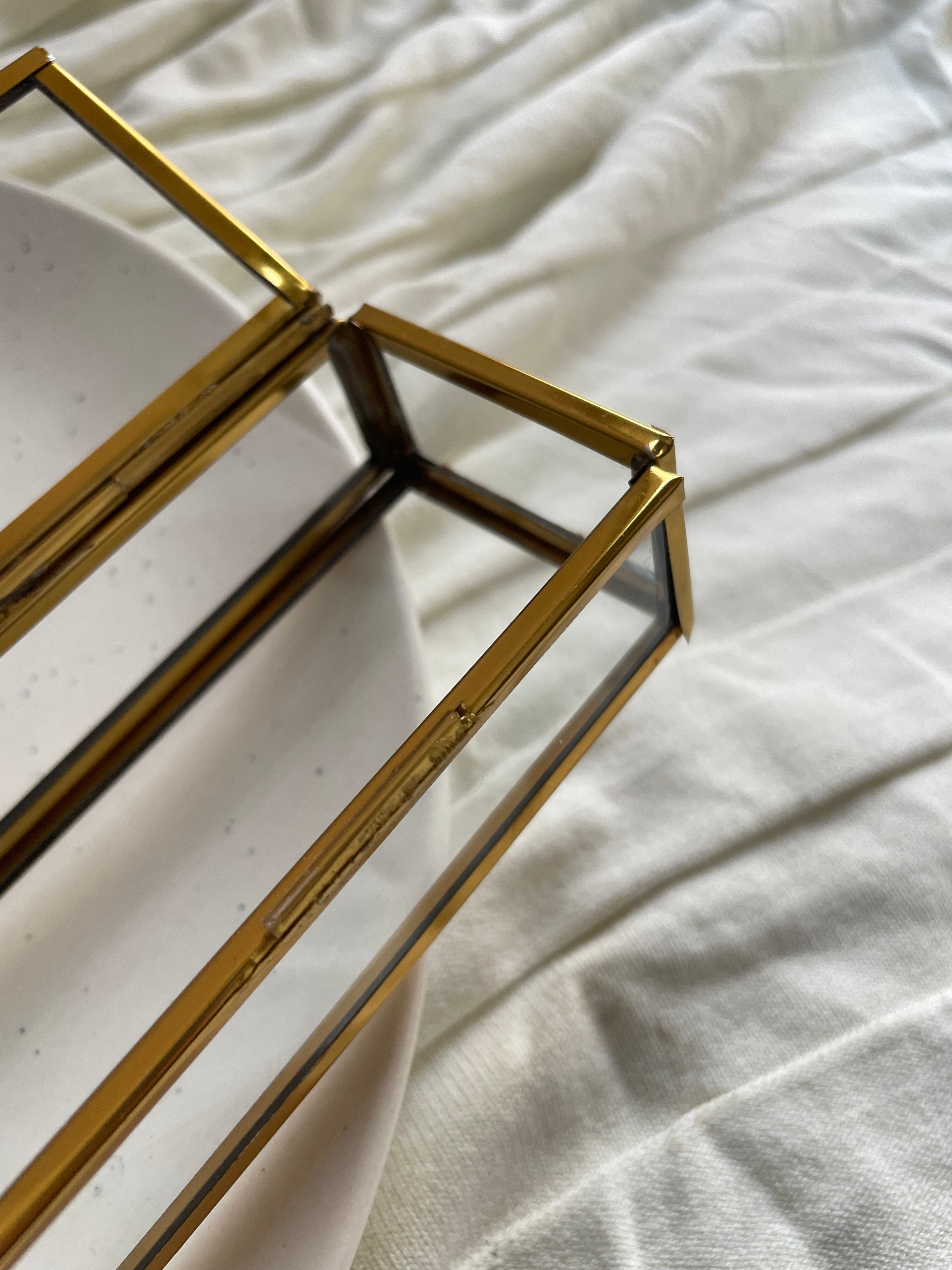 किसी भी कमरे के लिए एक शानदार अतिरिक्त, यह लक्स ग्लास बॉक्स कीमती गहने या किसी अन्य आवश्यक सामान को संग्रहीत करने के लिए एकदम सही है। पीतल के फ्रेमिंग के साथ सुरुचिपूर्ण ग्लास से तैयार, यह एक प्रभावशाली डिस्प्ले पीस है जो हर किसी को ईर्ष्यालु बना देगा! यह आपके प्रियजनों के लिए कुछ पैक करने के लिए एक आदर्श उपहार है। यह आपके वैनिटी के लिए एक बहुउद्देशीय अतिरिक्त है।