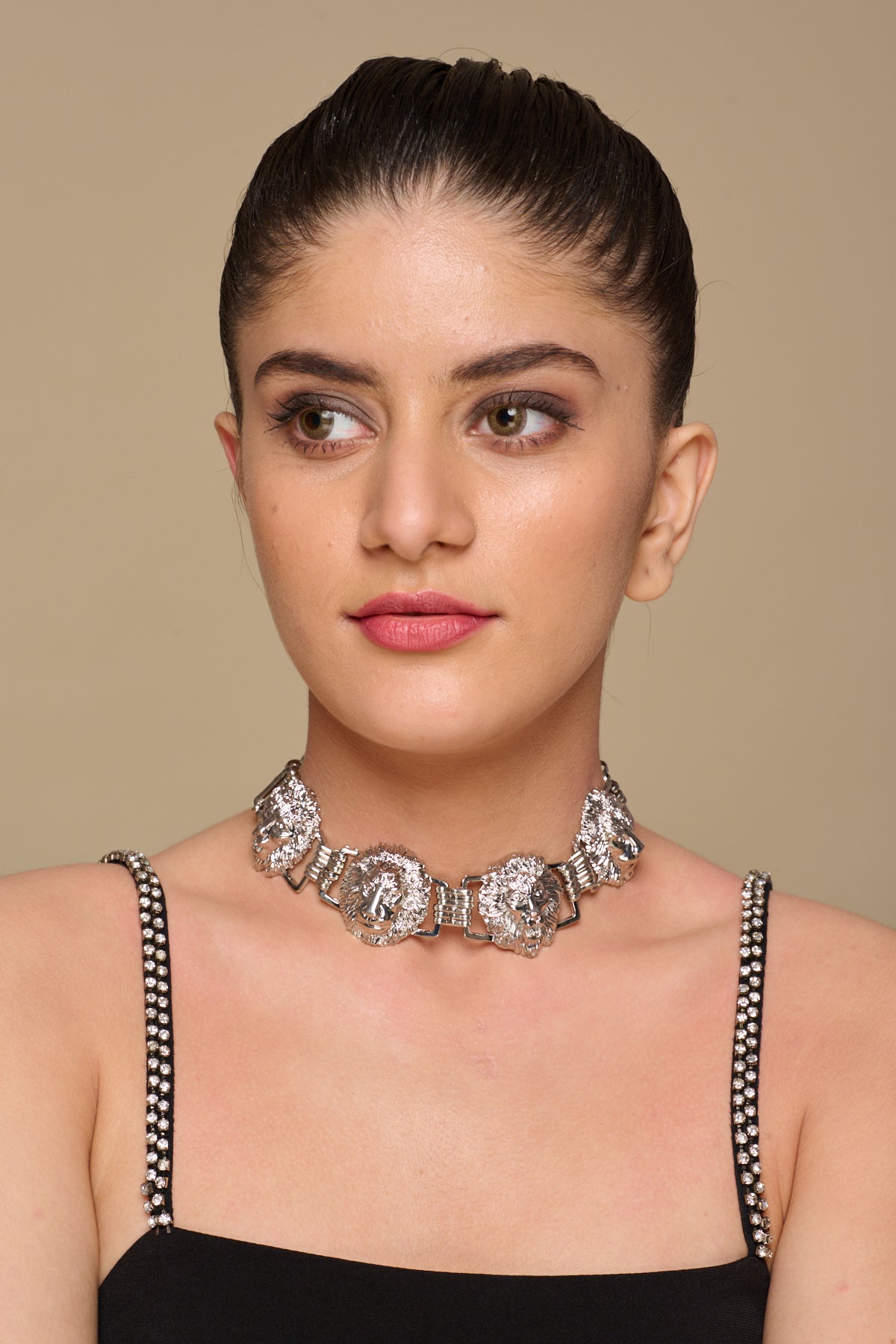 इस प्रभावशाली रीगल बीस्ट नेकलेस में रॉयल चोकर डिज़ाइन है और यह किसी भी आउटफिट को एक्सेसराइज़ करने का एक आदर्श तरीका है। विस्तृत लालित्य के साथ तैयार किया गया, यह नेकलेस निश्चित रूप से एक स्टेटमेंट बनाएगा।