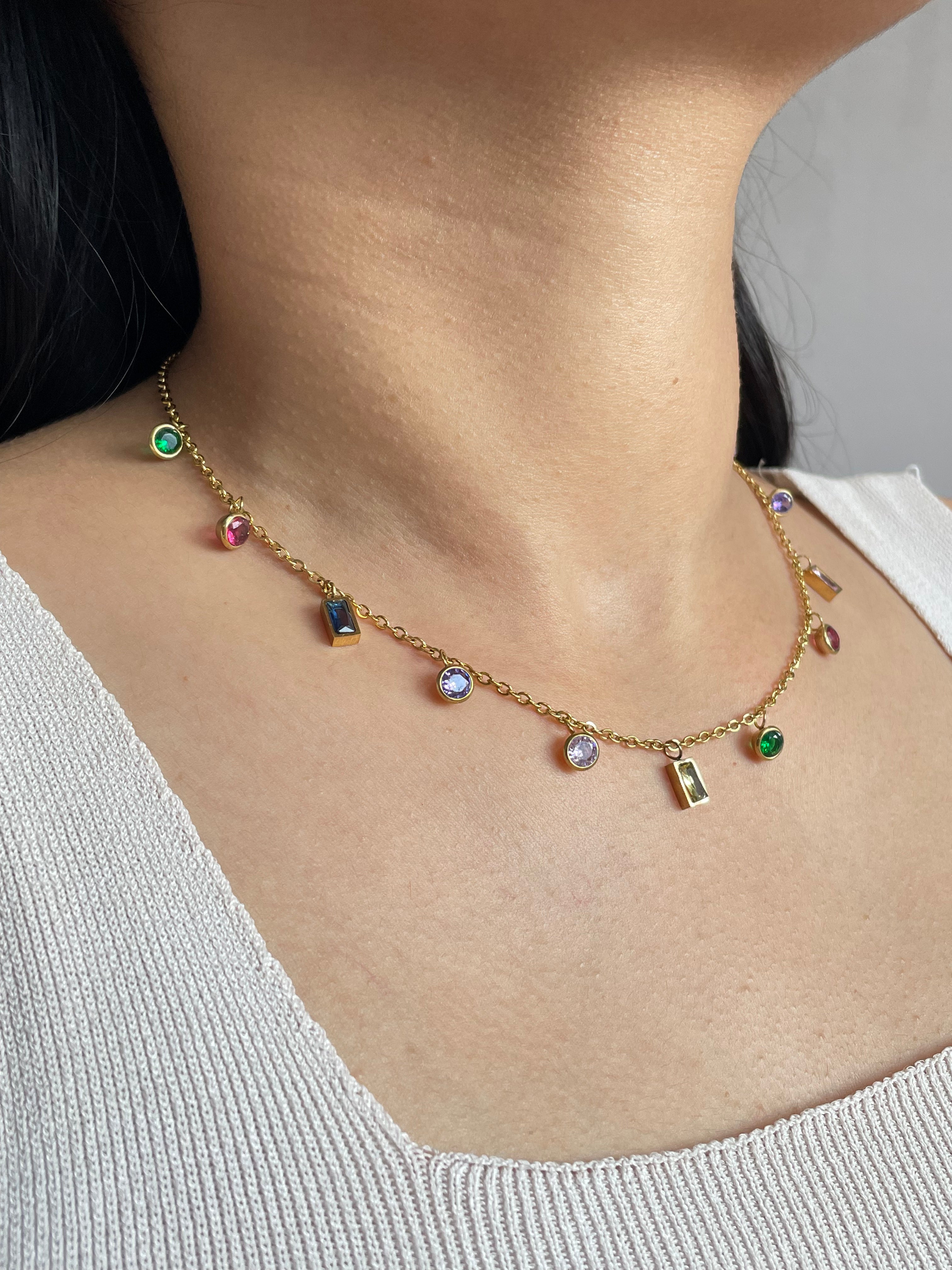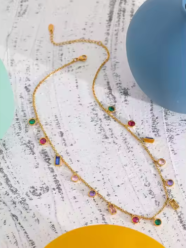 Add a pop of personality to your look with our Vibrant Vibes Charm Chain. This unique, stainless steel chain is anti-tarnish and waterproof. Make a statement at the office or on campus with this must-have for your OOTD.