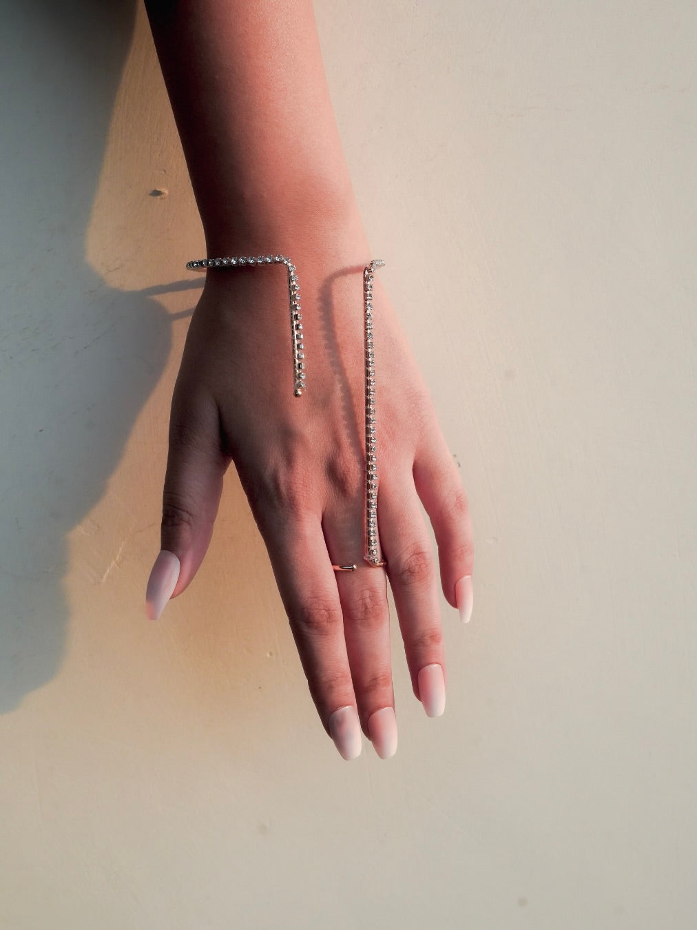 Get ready to add a touch of celestial charm to your outfit with this one-of-a-kind palm cuff. With its unique and stylish design, you'll be sure to stand out from the crowd. Say goodbye to boring accessories and hello to playful and fun fashion!