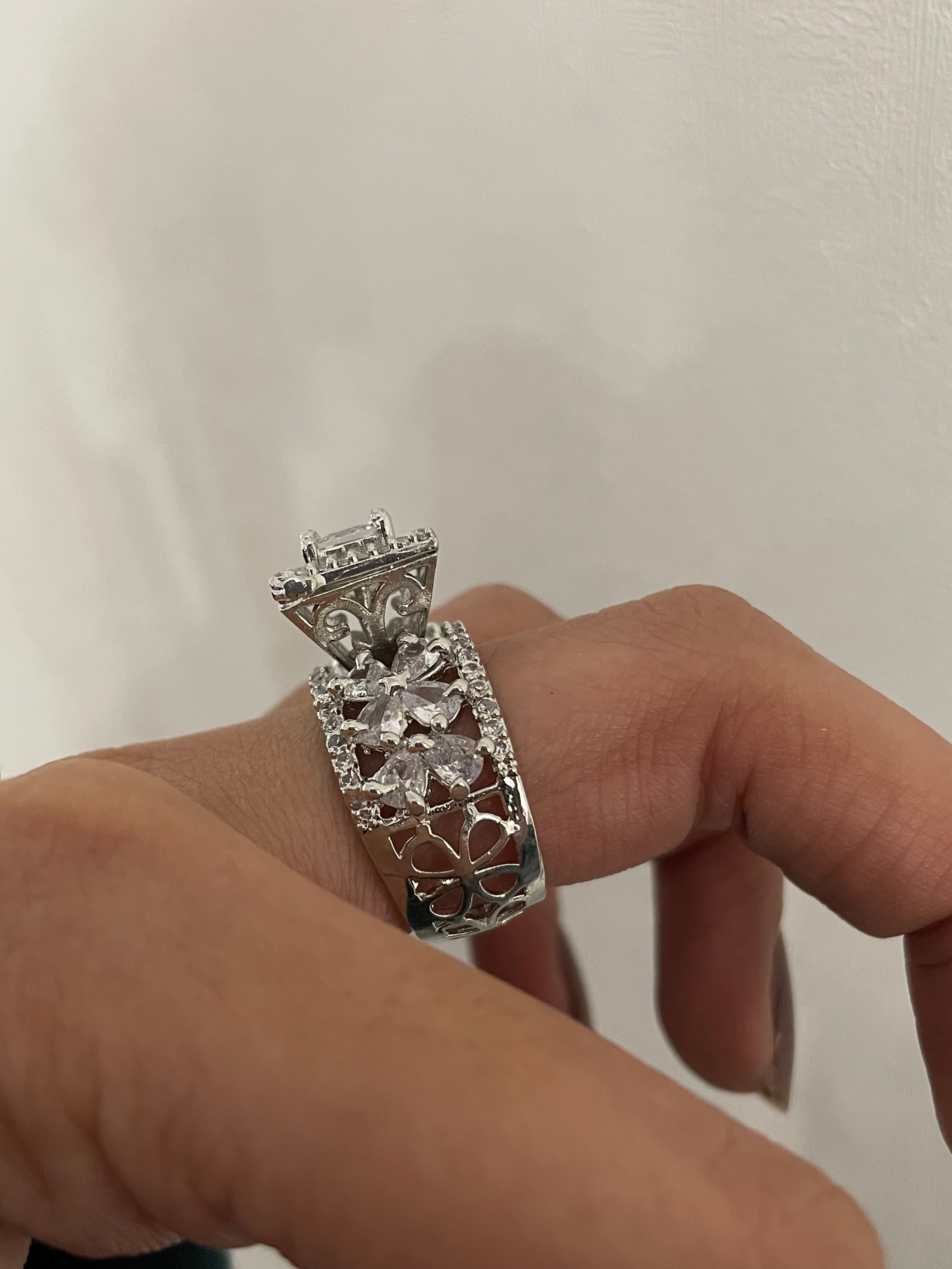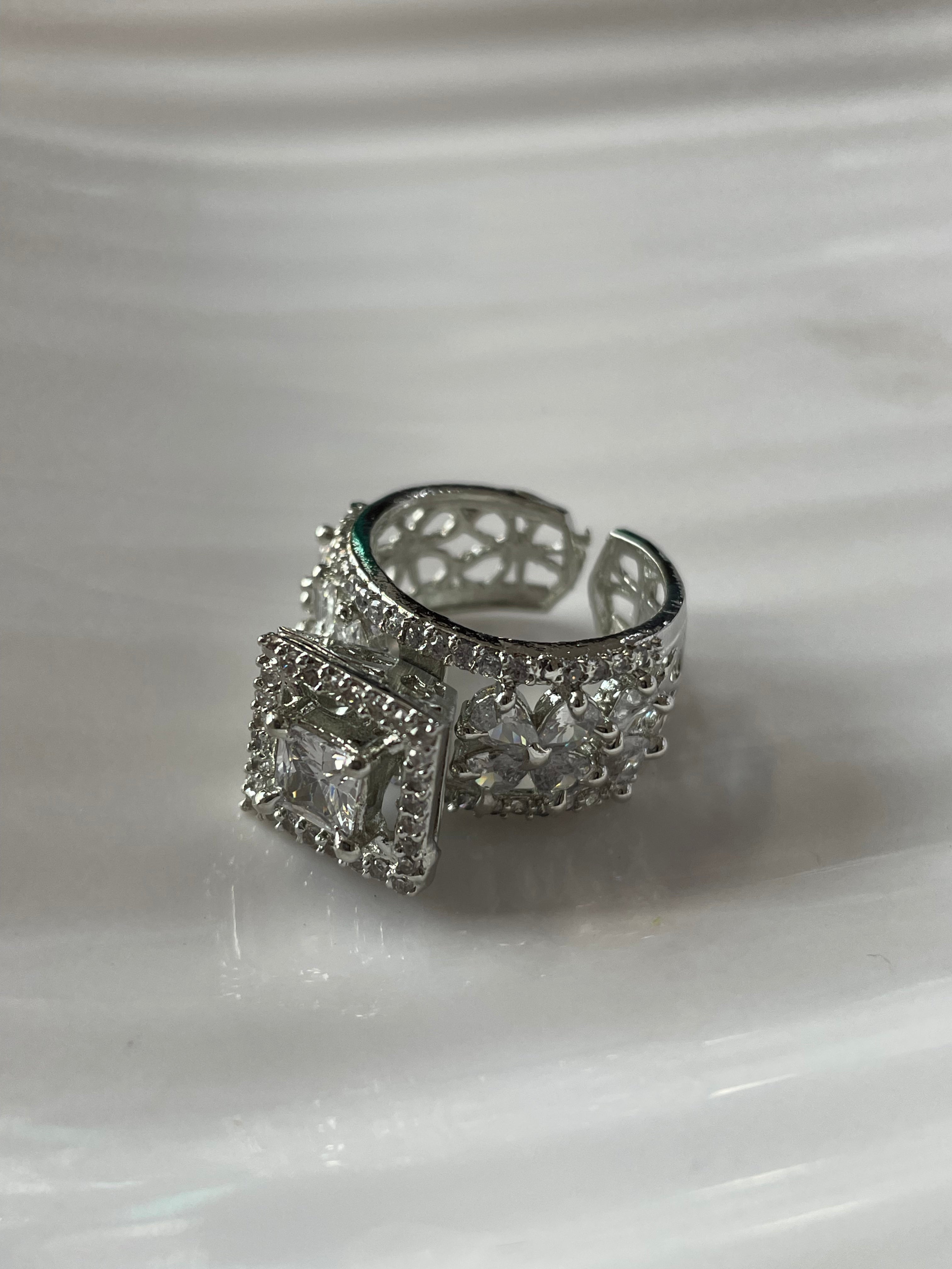 Sparkle and shine all night long with the Diamond Nightfall Elegance AD Ring. This glam and uniquely designed ring is not only eye-catching, but also adjustable in size for optimal comfort. Perfect for any occasion, add a touch of elegance to your look with this stunning piece. (Size adjustable - one size fits all!)