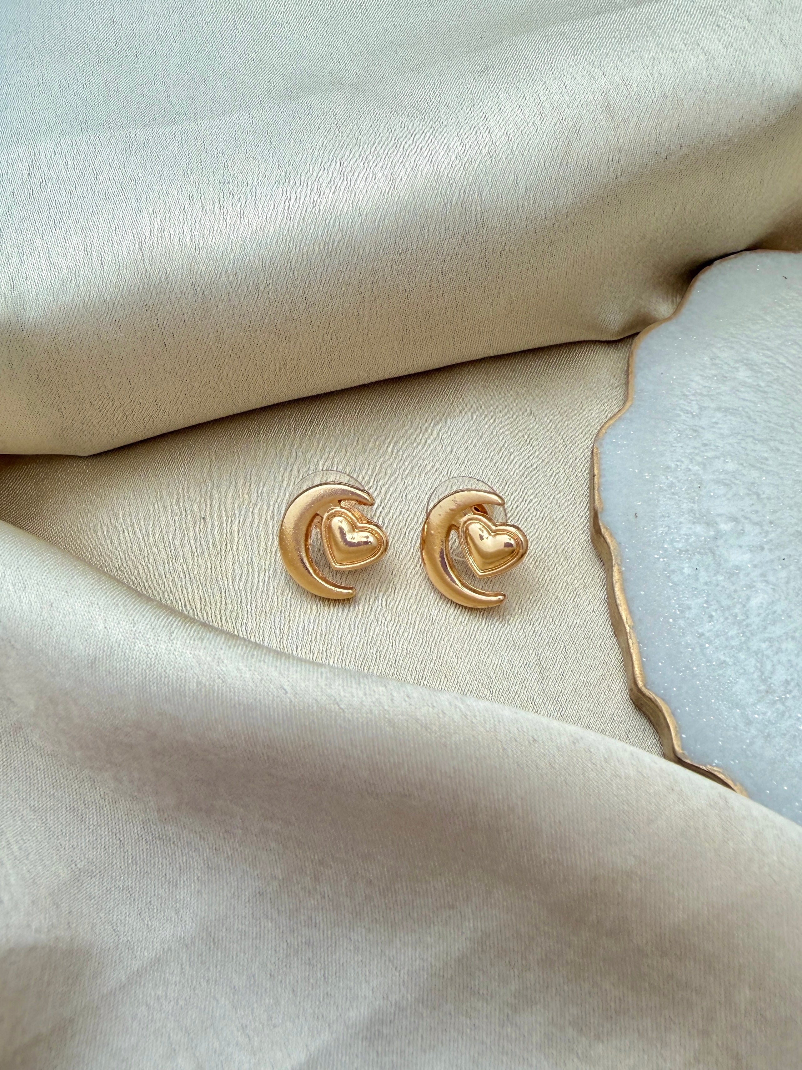 The Golden Moon Heart Earrings are a sweet and minimal pair designed with a crescent moon holding a tiny heart. Finished in a soft golden shine, these earrings look elegant yet playful. They are perfect for everyday wear and add a subtle charm to your look without feeling heavy.