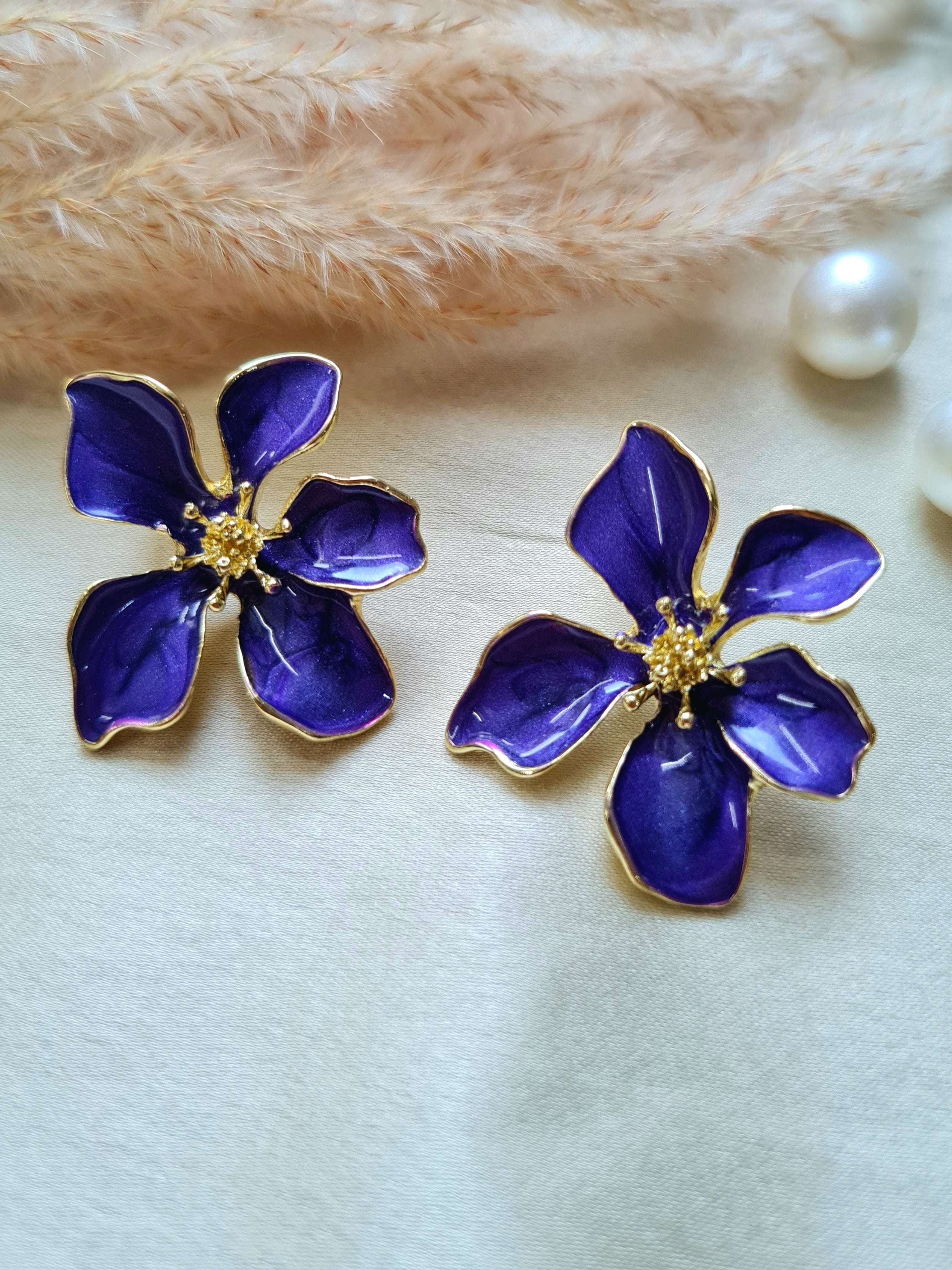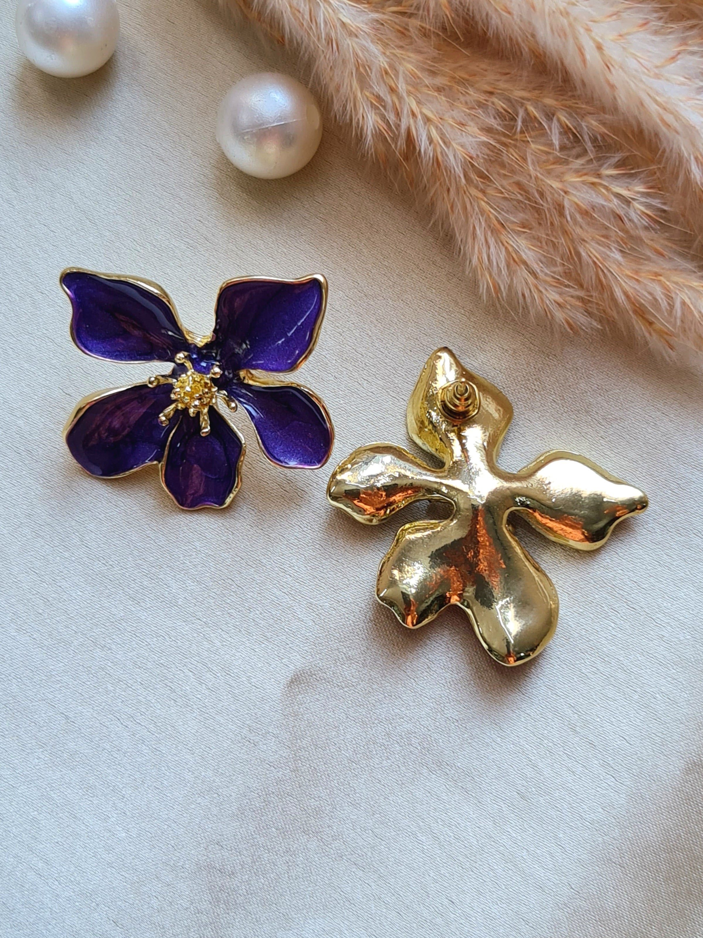 The Golden Orchard Earrings are a beautiful mix of elegance and charm. Designed with glossy purple and Peach petals and golden detailing, these floral earrings instantly brighten up any look. They are lightweight, comfortable to wear, and perfect for adding a soft yet stylish touch to your outfit — whether for brunches, festive occasions, or everyday wear.
