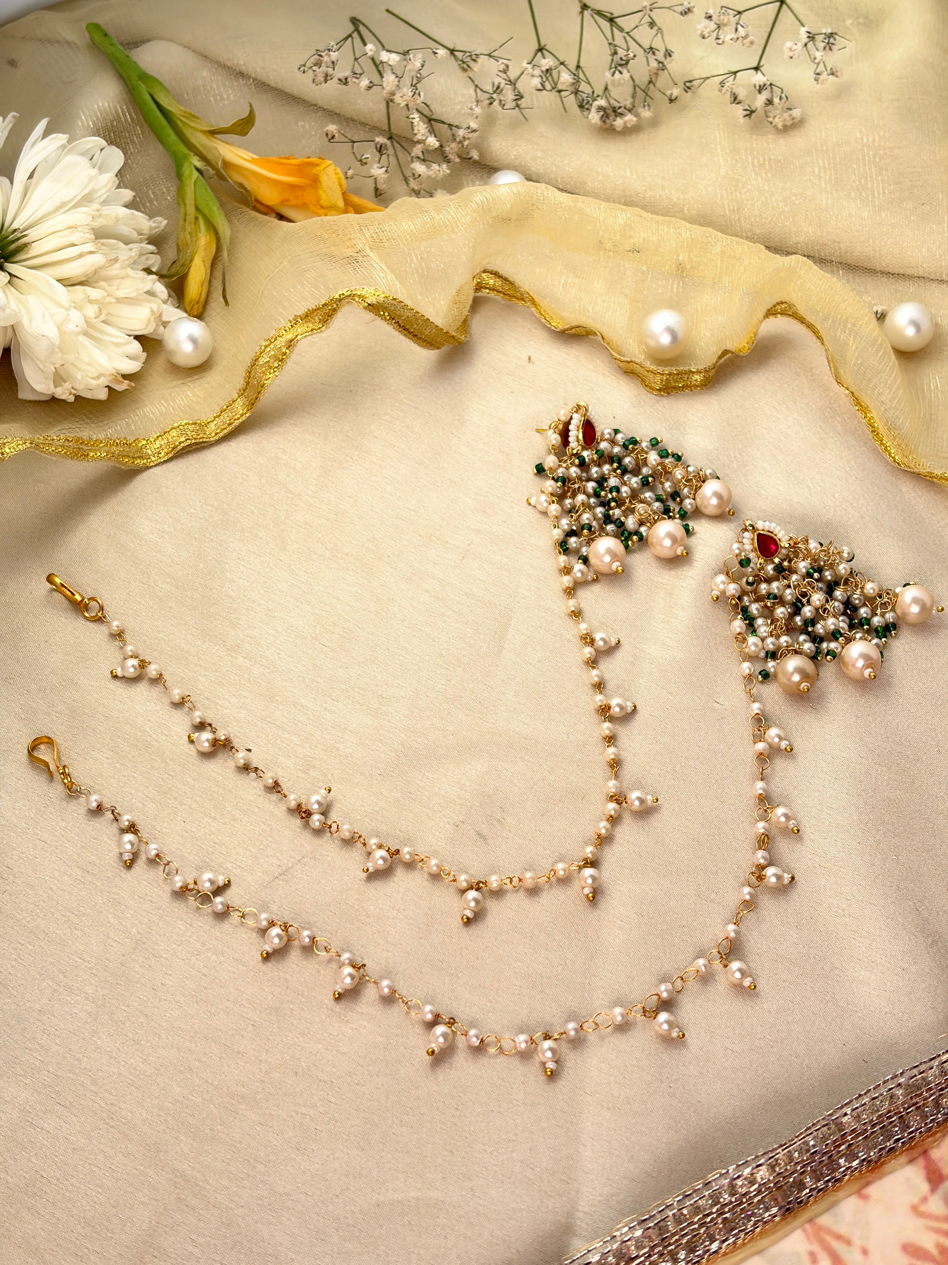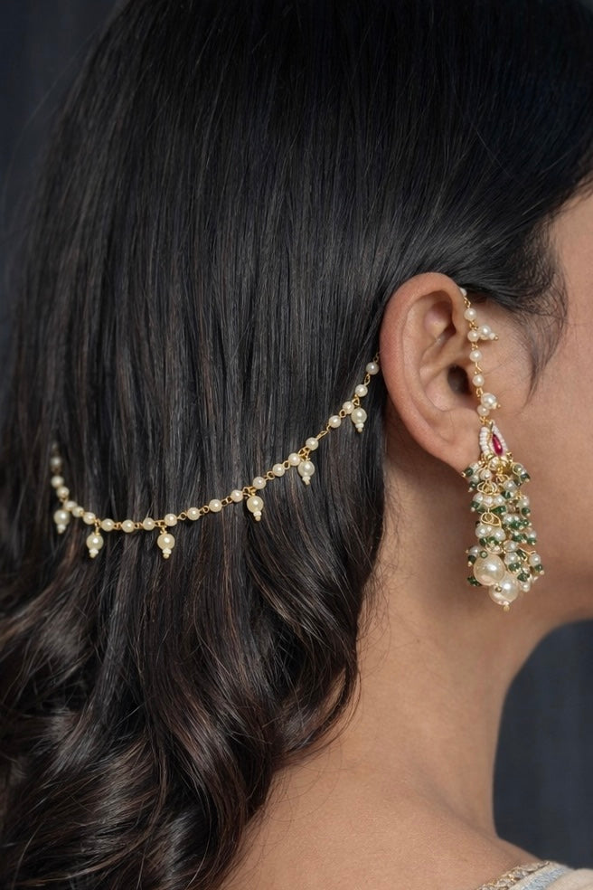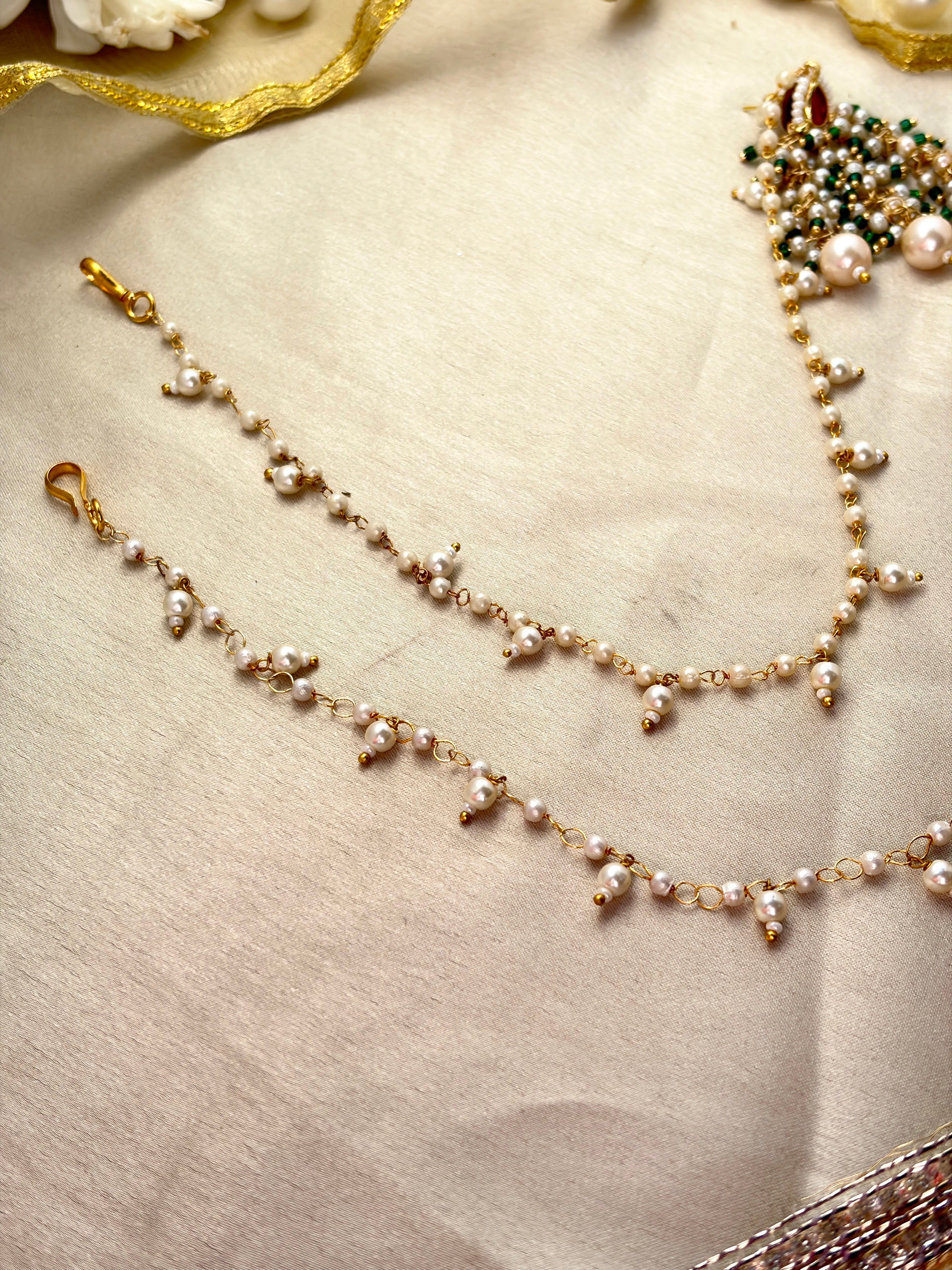 A clean, elegant kaan-chain made with tiny pearl drops and a subtle festive cluster—perfect when you want a traditional touch without going heavy.