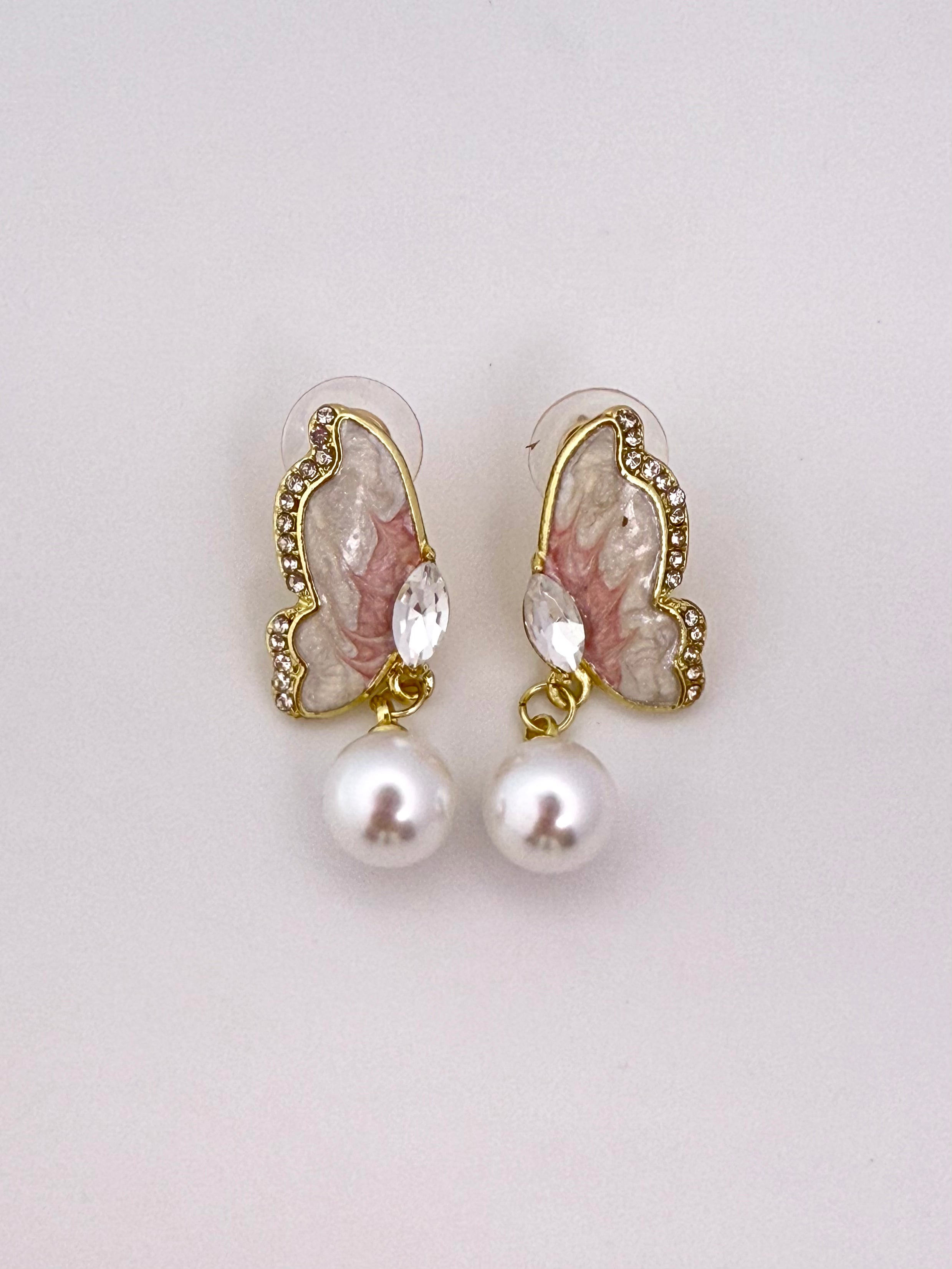 Bring a flutter of charm to your look with the Pearl Radiance Earrings. Featuring delicate pearl butterflies, these earrings add a playful sparkle that dances with every movement. Perfect for adding a whimsical touch to your everyday style or special moments.