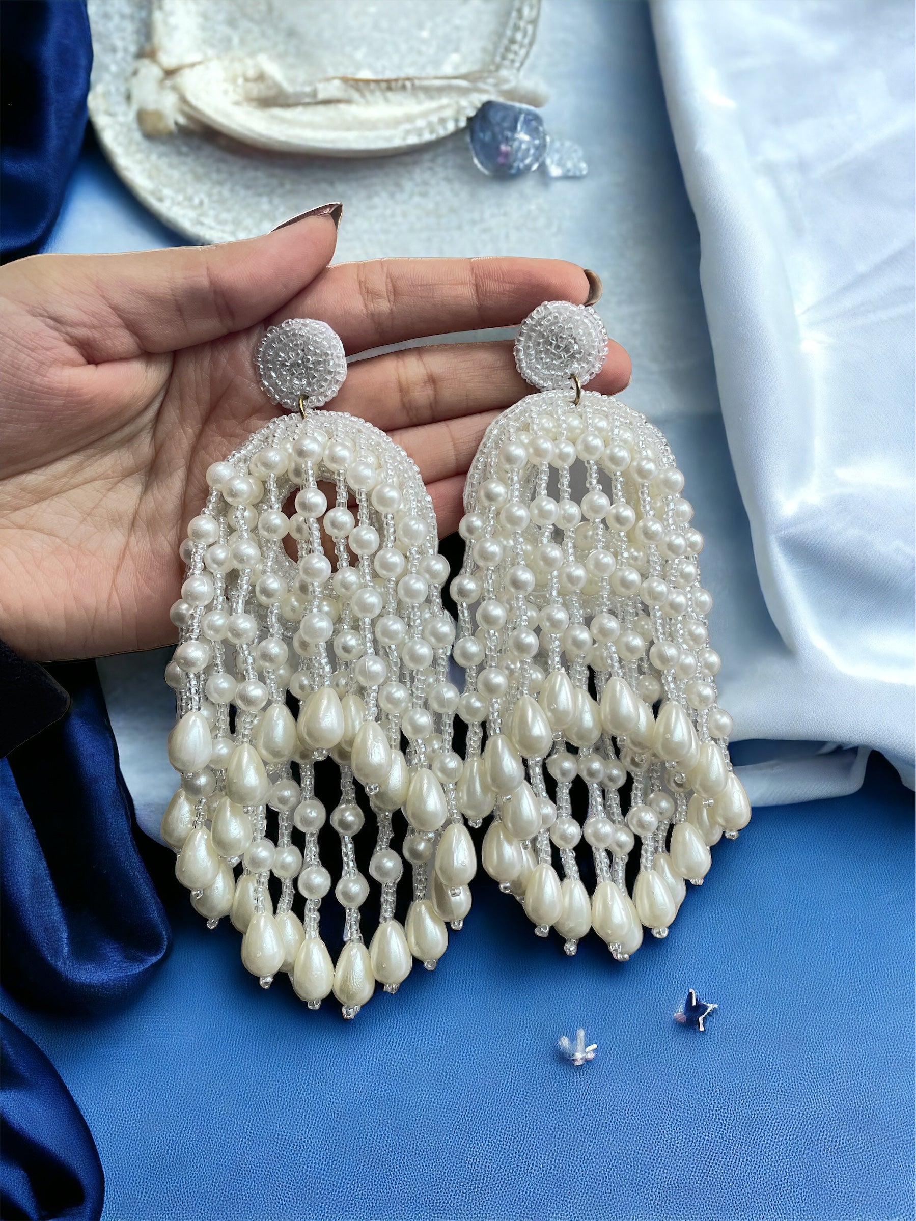 Make a splash with these playful Pearl Waterfall Earrings. Each pair is handmade with care and features lustrous pearls that will add a touch of elegance to any outfit. Perfect for a night out or just adding some fun to your everyday look. (P.S. They make a great gift too!)