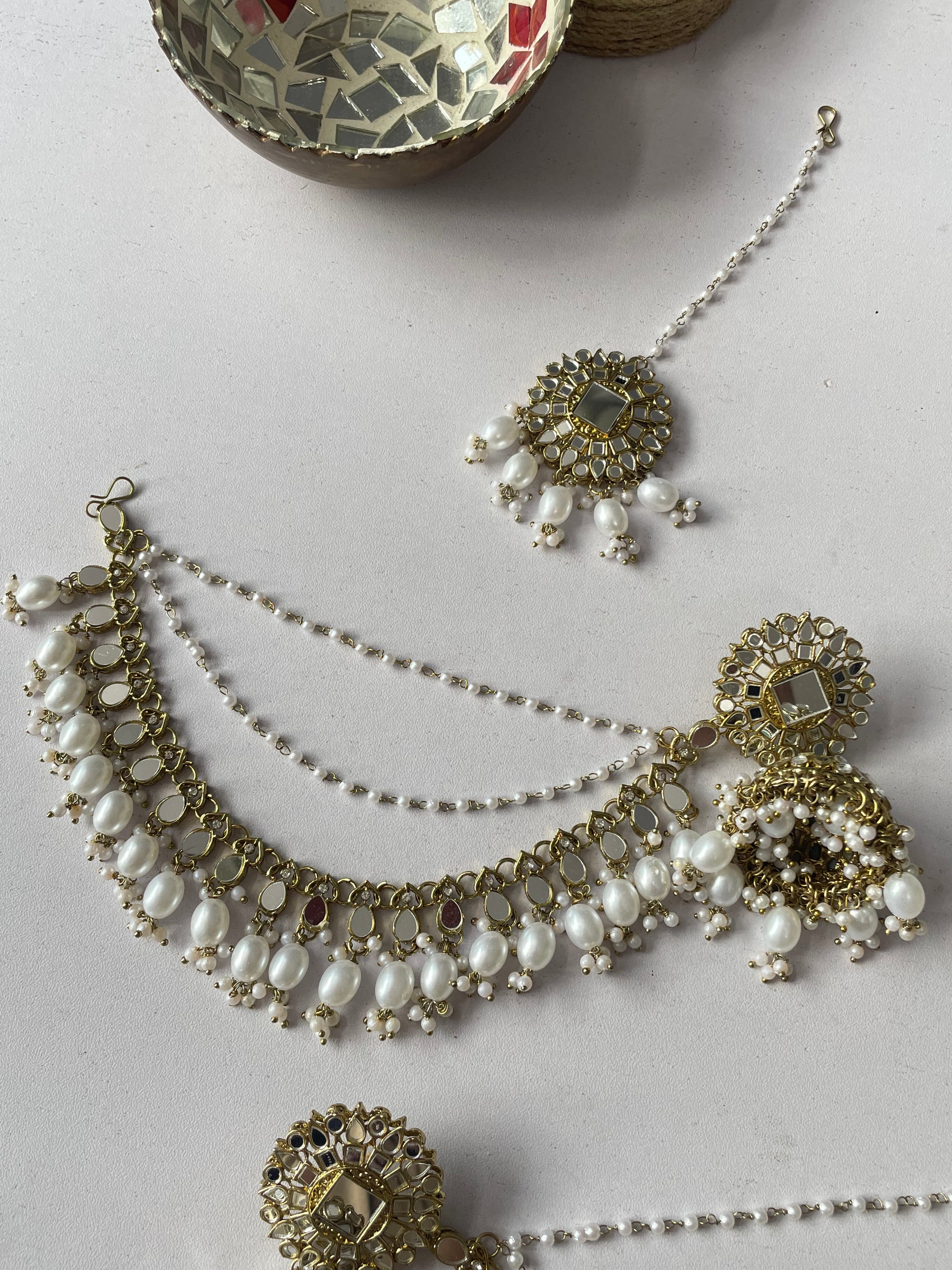 Traditional kundan jhumka set with matching mangtika. A must-have ethnic accessory for timeless elegance and statement style.
